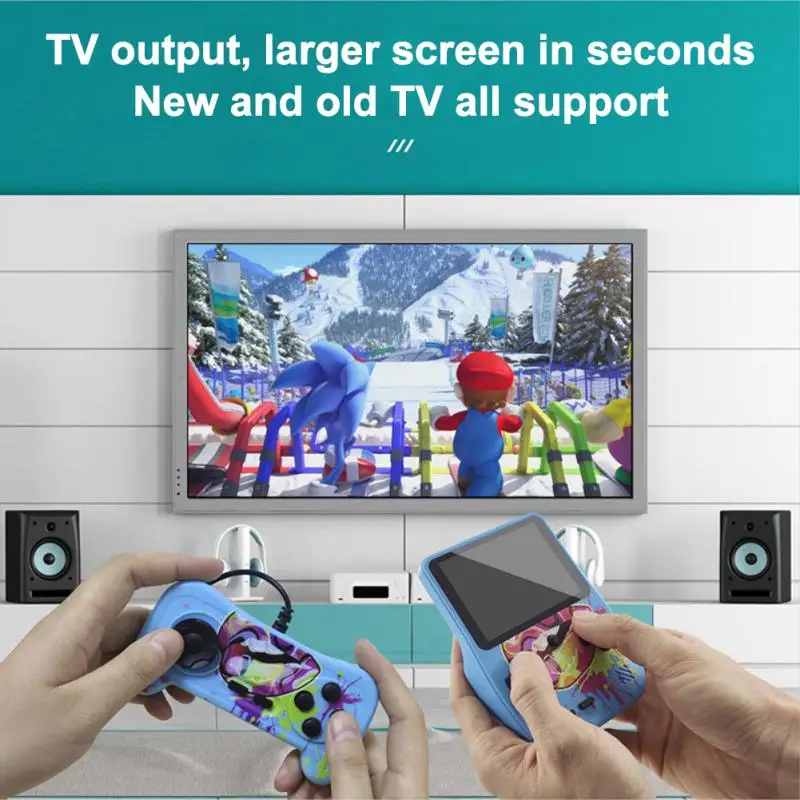[Поддерживает новый/старый выход ТВ] поддерживает выход телевизора, чтобы стать большим экраном за считанные секунды, подключите телевизор и игровую консоль с помощью прилагаемого AV кабеля, подключите одну ручку или две ручки, И наслаждайтесь веселыми играми с большим экраном с вашим партнером!