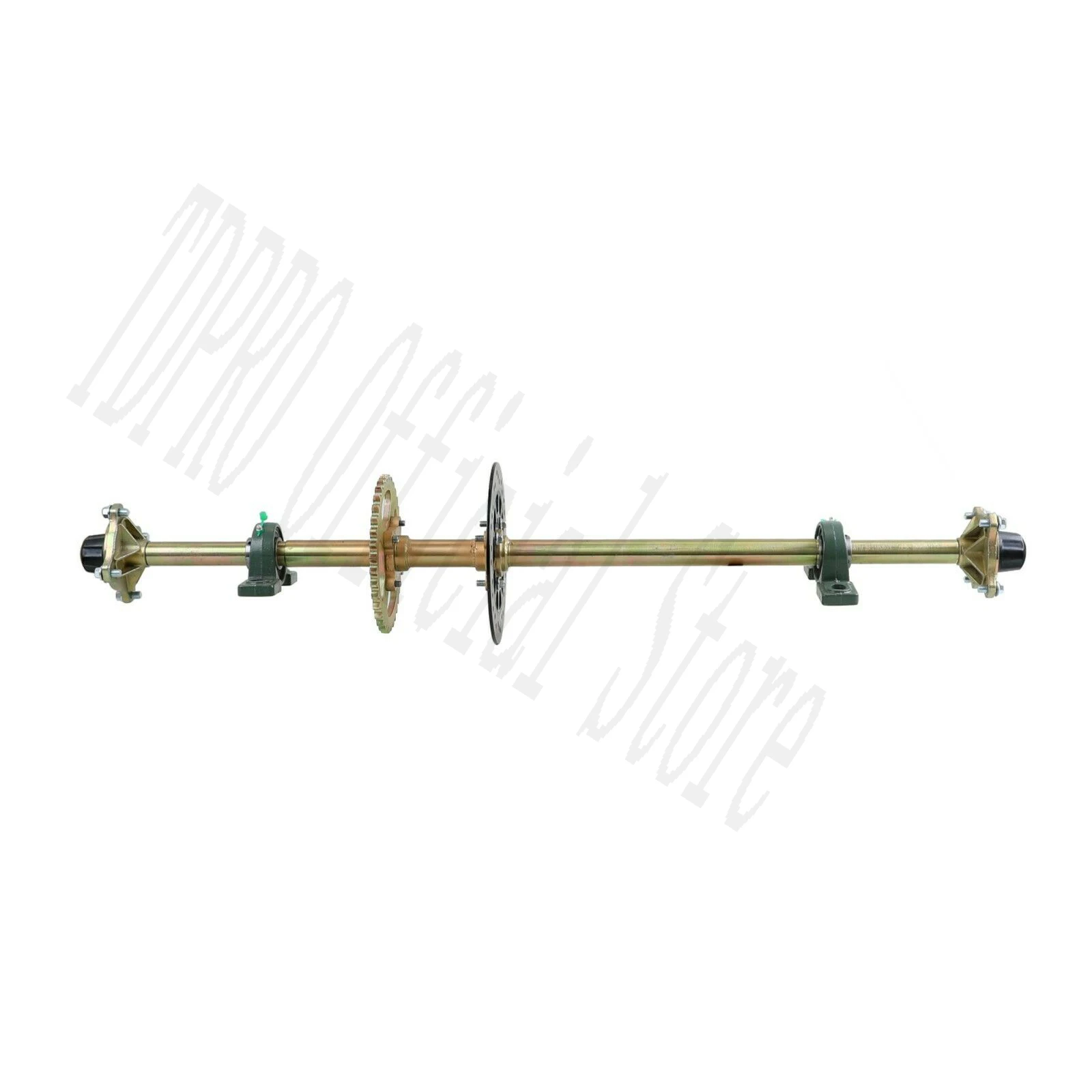 Комплект оси поставляется с: ось + звездочка + тормозной диск + 1 "опорные подшипники + 4 болта шаблон ступицы колеса