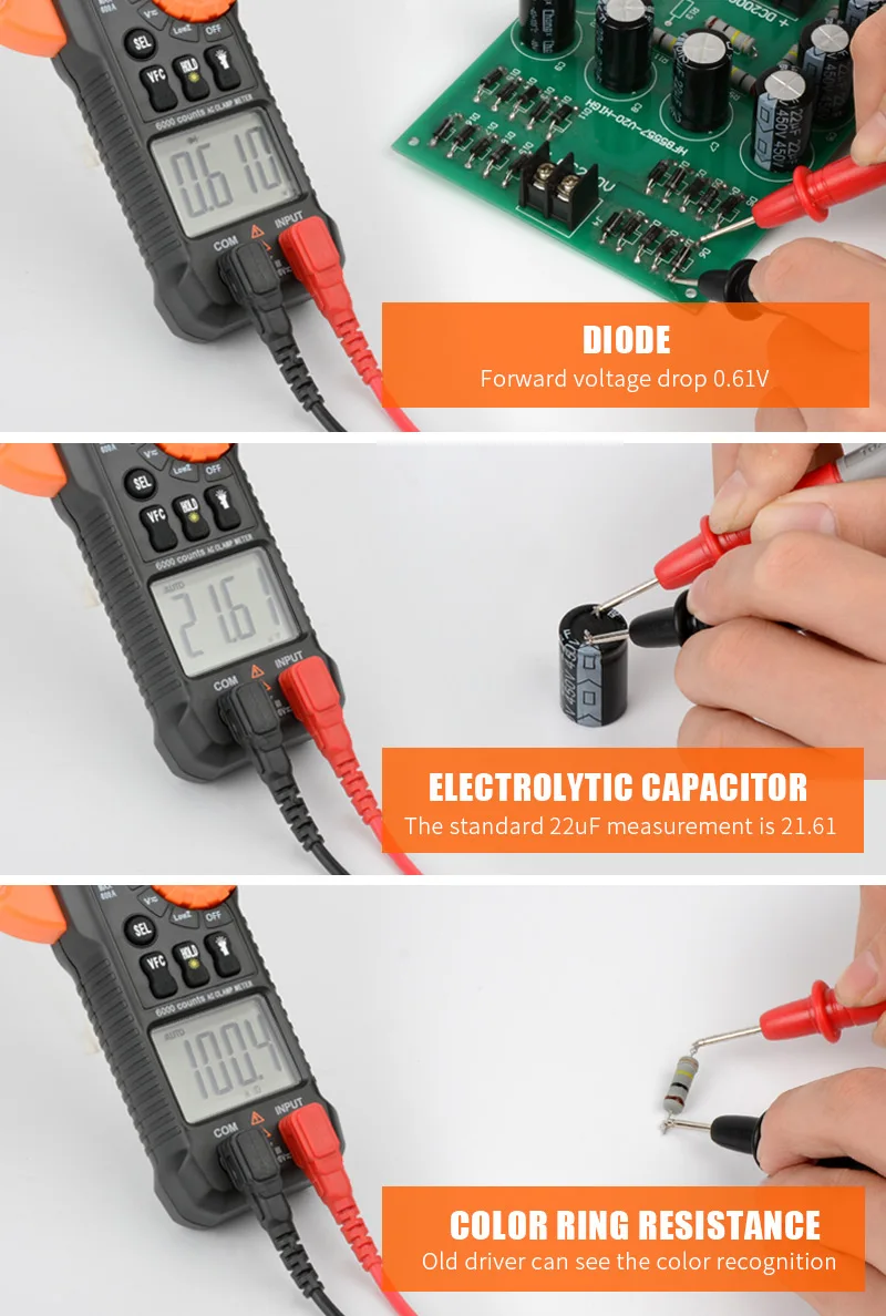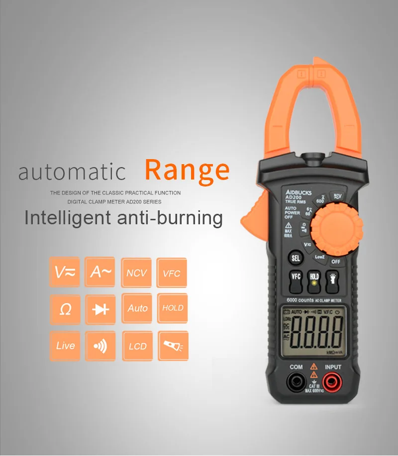 Цифровой токоизмерительный измеритель переменного тока 6000 отсчетов мультиметр Амперметр тестер напряжения автомобильный усилитель Гц Емкость NCV Ом тестовый токоизмерительный зажим