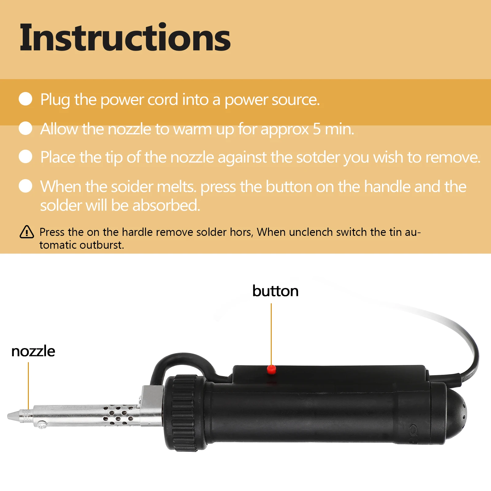 Это своего рода качественный инструмент для удаления олова, большой объем с сильным всасыванием, идеально подходит для удаления олова. Подходит для удаления олова из толстой пленочной интегральной схемы и большого компонента. Простота в эксплуатации, быстро и удобно, помогает повысить эффективность работы. Вы можете попробовать.
