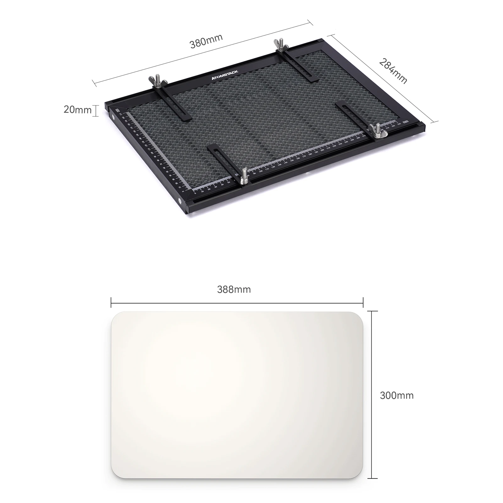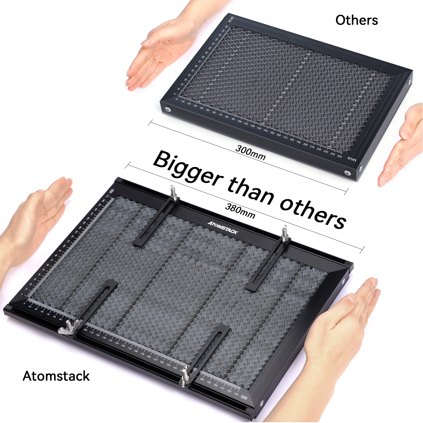 Двойная защита:Сотовая доска ATOMSTACK принимает научный и разумный дизайн высоты сота для предотвращения лазерного сжигания верстака или рабочего стола. В то же время он оснащен противорежущей металлической защитной подложкой, которая может дополнительно защитить рабочий стол от лазерных повреждений.