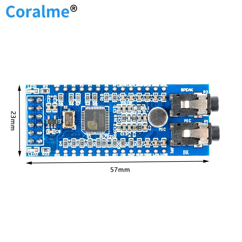Поддержка интерфейса SPI и параллельного интерфейса неспецифического модуля распознавания речи, встроенного микрофона и активного кристаллического осциллятора, удобно реализовывать функции распознавания речи, голосового управления и общения между человеком и машиной в электронных продуктах.