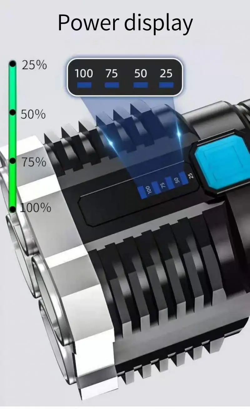 2. Четырехуровневый дисплей питания в режиме реального времени: Индикация зарядки: синий светильник мигает при зарядке и прекращает мигать после полной зарядки.