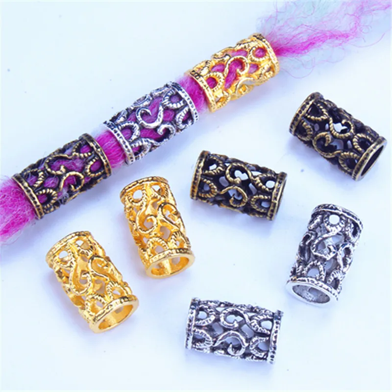 10 шт. серебряное золото полые викинговые косы для волос dread борода дредлоки бусины кольца трубка для волос Аксессуары размер отверстия 6 мм