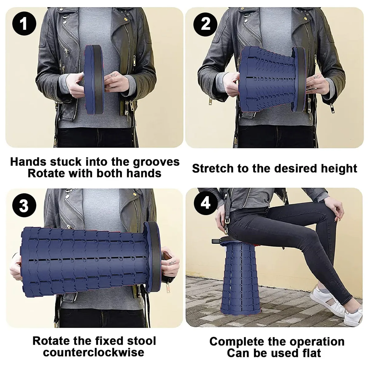 -Инновационная складная конструкция: уникальная запирающая застежка позволяет складному табурету легко открывать и закрывать за считанные секунды, и он надежно фиксируется на месте после открытия. Даже ребенок может сделать это быстро и легко! Удобно и безопасно вам понравится!