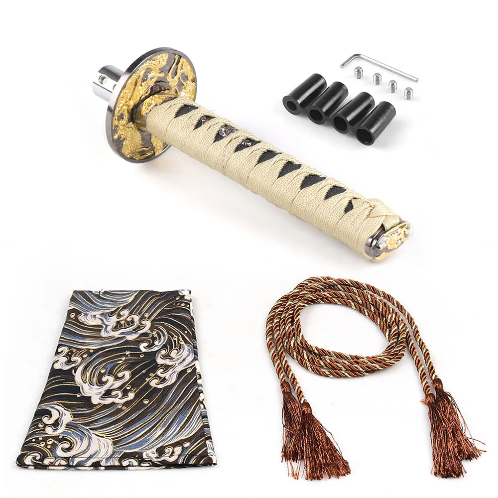 Когда-нибудь хотел быть как Самурай? Ну теперь вы (сорта) можете! Ручка переключения самурайского меча полностью изготовлена из стали для долговечности, с тканевым плетением из полиэфирной ткани и никелированным латунным акцентом. Они идеально подходят для тех, кто готов отправиться на трассу или тех, кто хочет постичь свой автомобиль!