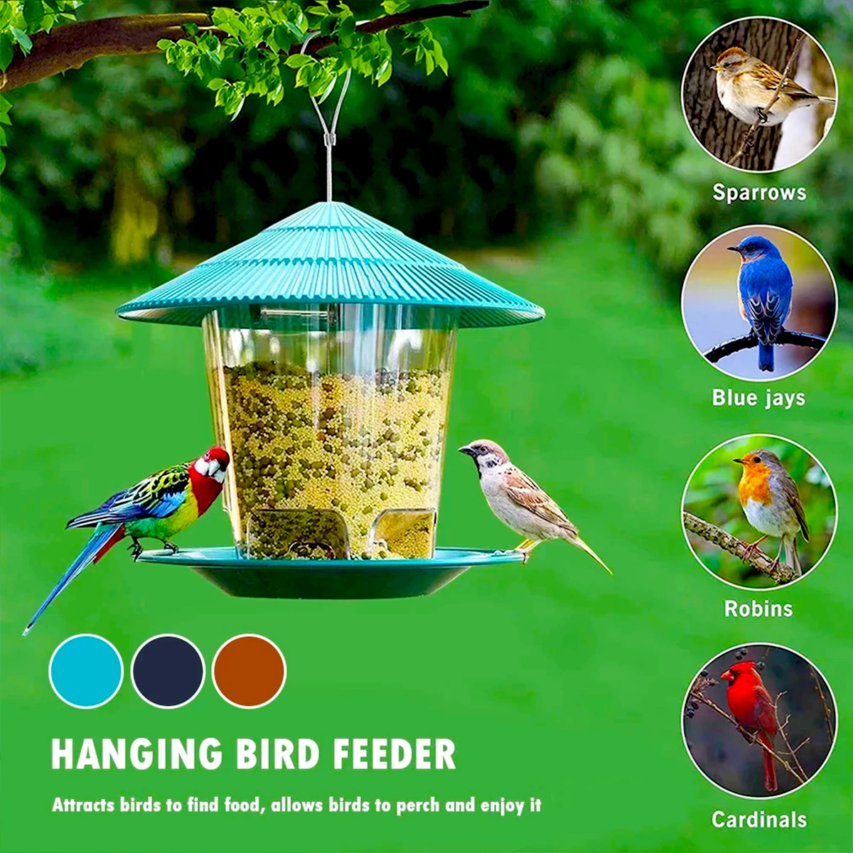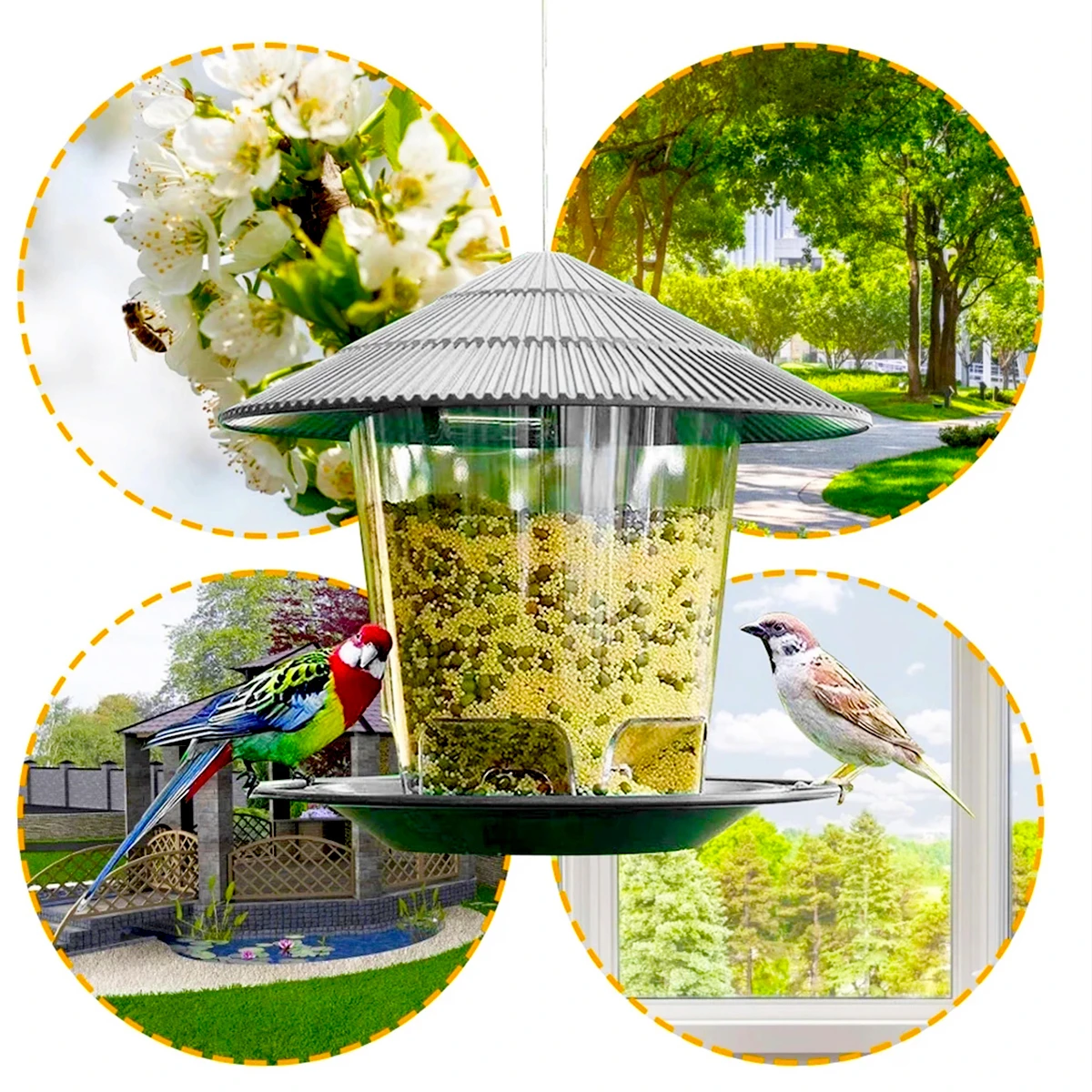 3. Пополнение: кормушка для птиц оснащена Блокирующей крышкой, чтобы надежно закрыть крышку. Прозрачный пластиковый Фидер позволяет вам узнать, когда пополнять фидер