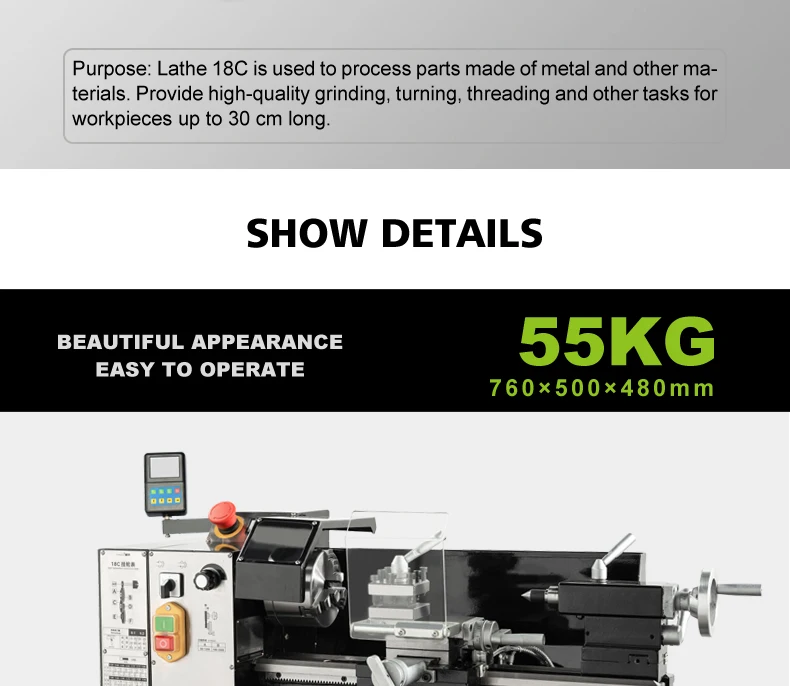 Максимальный диаметр точения кровати 180 мм