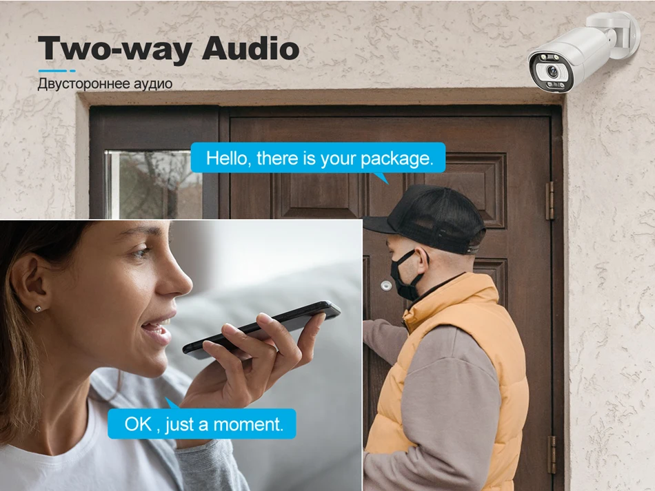 2. Все камеры встроены в микрофон и динамик, Поддержка двусторонней аудиозаписи.