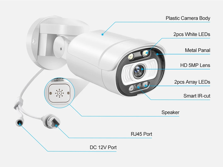 Когда 2 белых светодиода освещают, камера будет показывать красочное видение ночью,