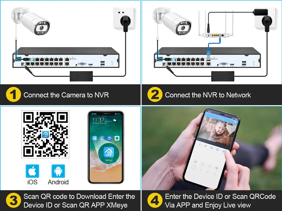 Простая настройка, всего 4 шага для просмотра мобильный телефон (Android и iPhone iOS)