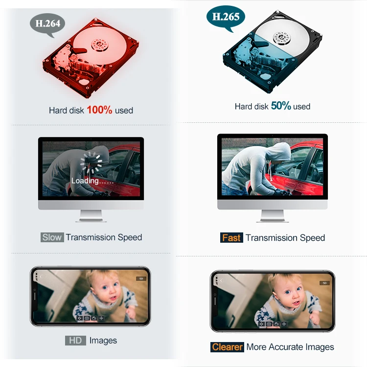 H.265 требует только более низкой полосы пропускания, скорость загрузки быстрее, воспроизведение видео более плавно.