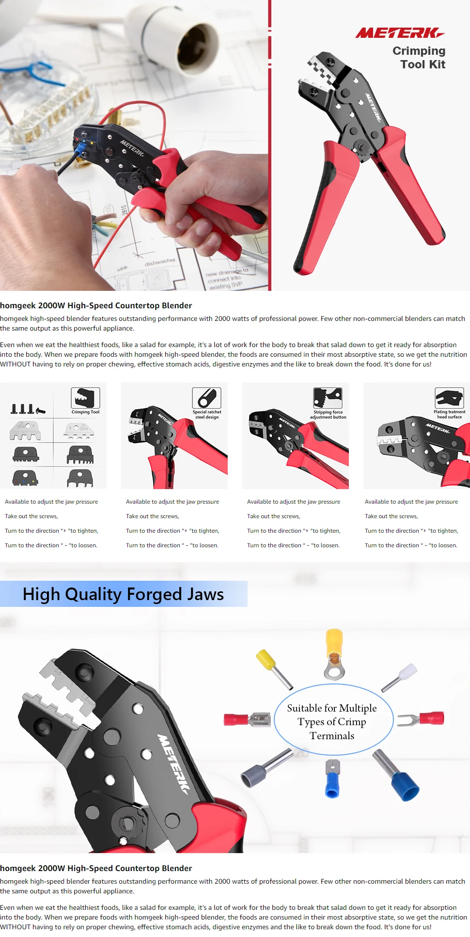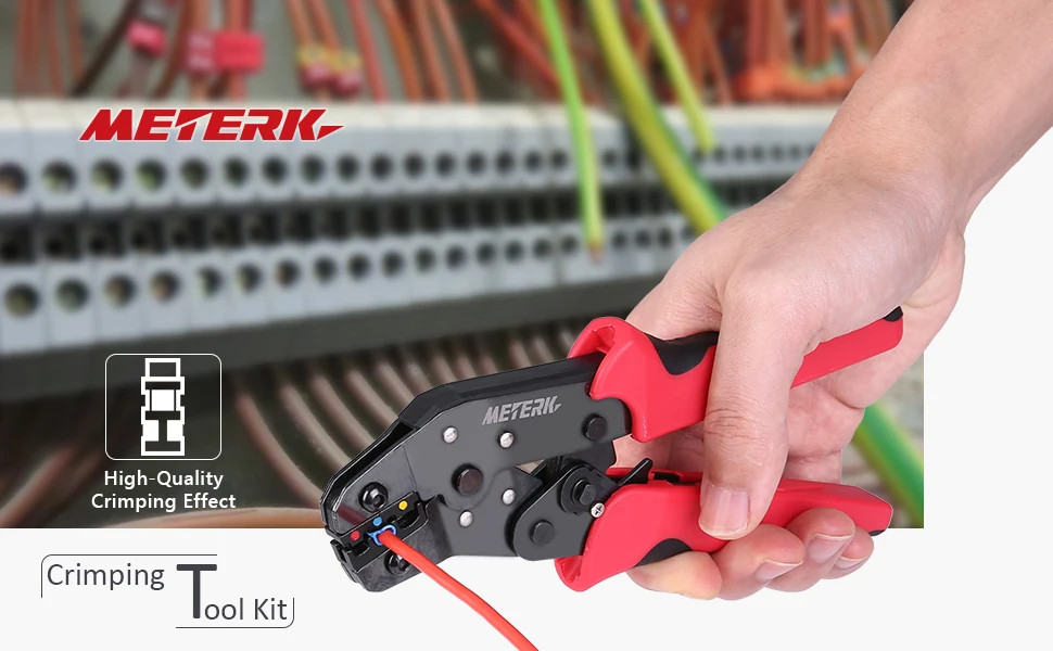 Набор инструментов для обжима Meterk имеет красивый цвет, улучшает износостойкость, коррозионную стойкость и т. д., предотвращает появление ржавчины и износа.