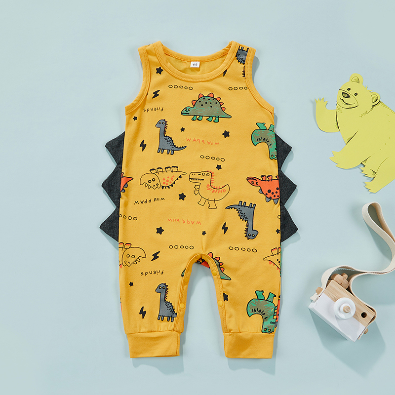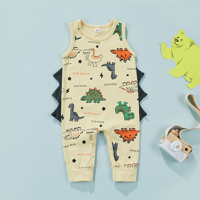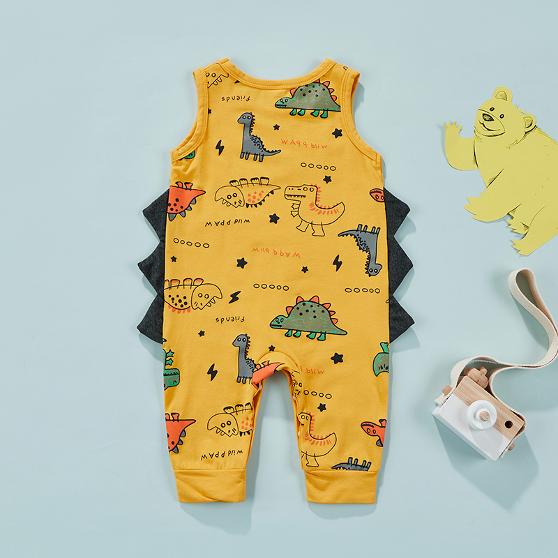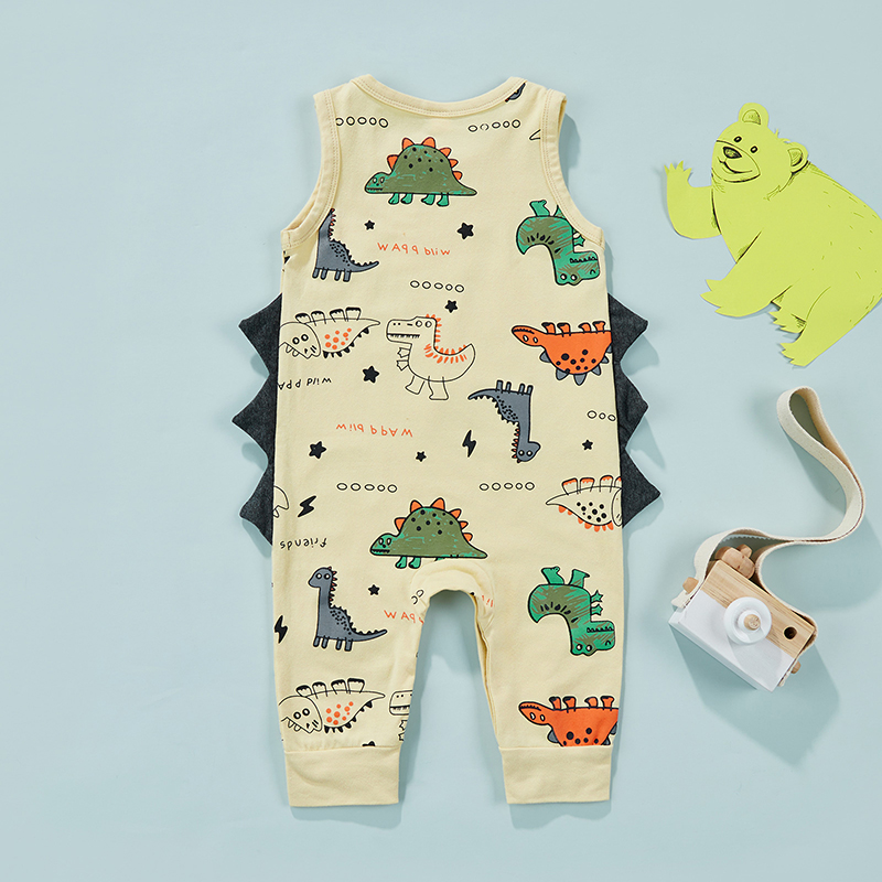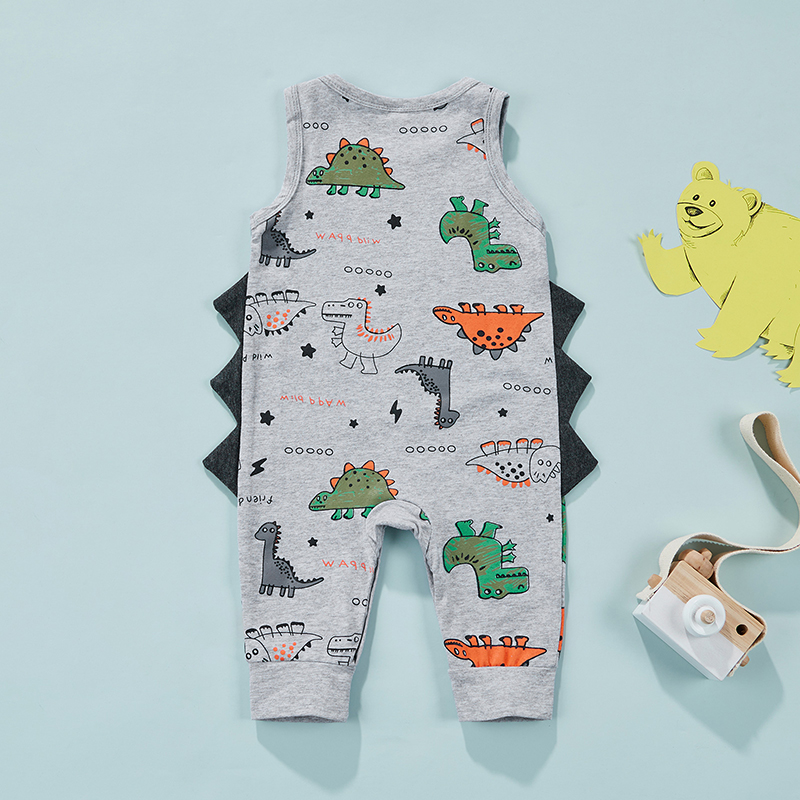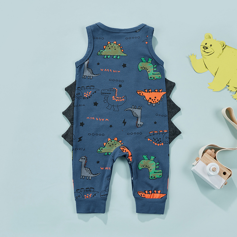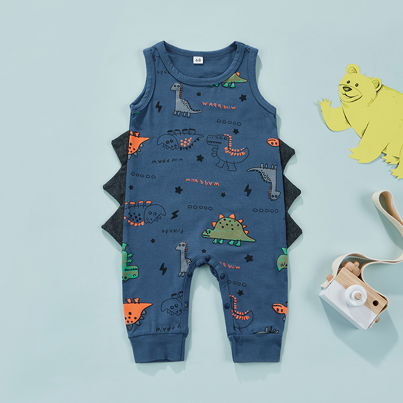 Baby Boy Dinosaur Romper, Sleeveless Cartoon Animals Print Romper Jumpsuit Summer Bodysuit