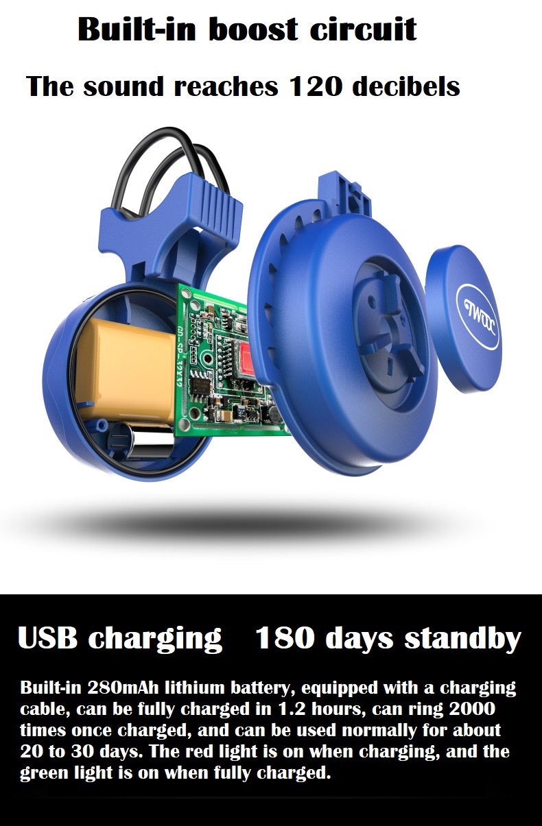 [Супер сильный Батарея] USB Перезаряжаемые, наши велосипедные звонки Встроенный 280mAh литиевая батарея Батарея, usb Перезаряжаемые, 1,2 час Время полной зарядки может использовать 2500 раз. Полностью удовлетворяет ваши потребности в езде на открытом воздухе!