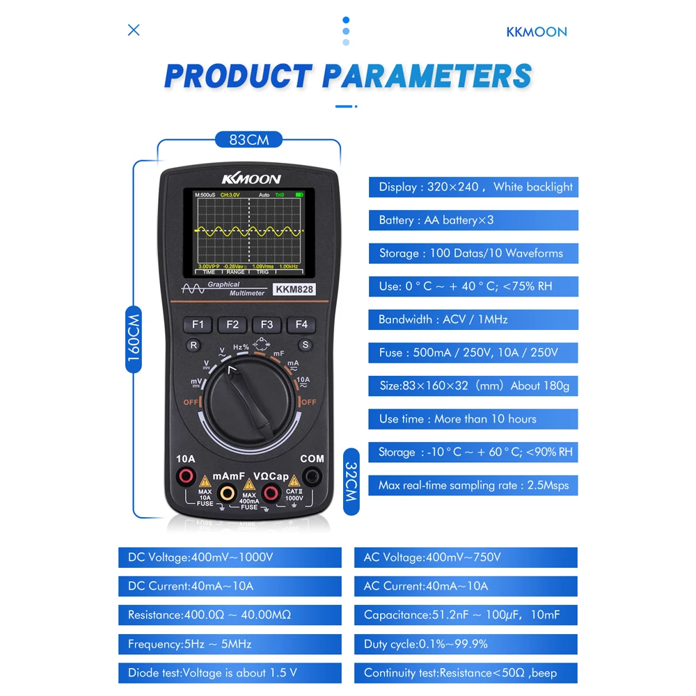 Однокнопочный осциллограф: не требуется Датчик осциллографа, измерительный сигнал непосредственно. Быстрое и точное измерение, четкий дисплей формы волны.