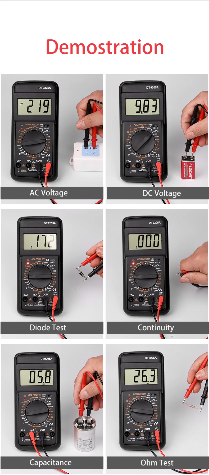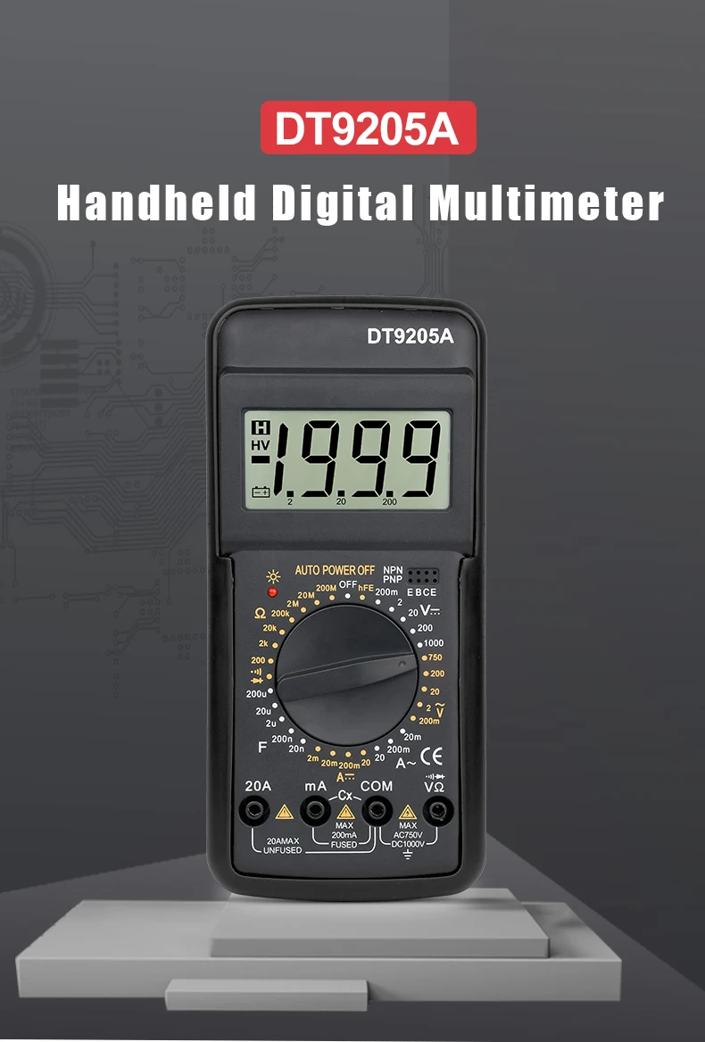 Профессиональный цифровой мультиметр DT9205A 1000 В измеритель напряжения Измеритель сопротивления тока Конденсатор Диод Непрерывность тестер для начинающих