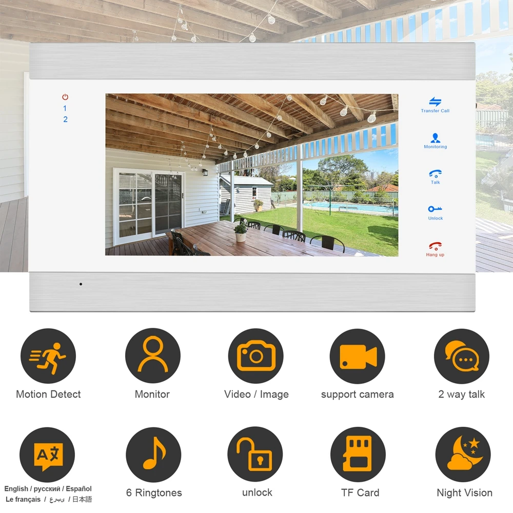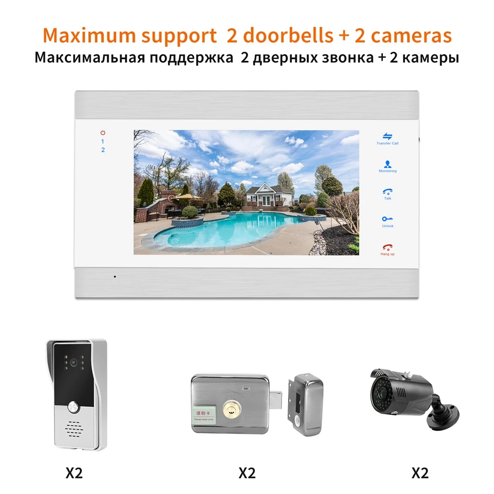 7 дюймов видео домофон + 1000TVL видео-телефон двери для квартиры с Запись детектора движения