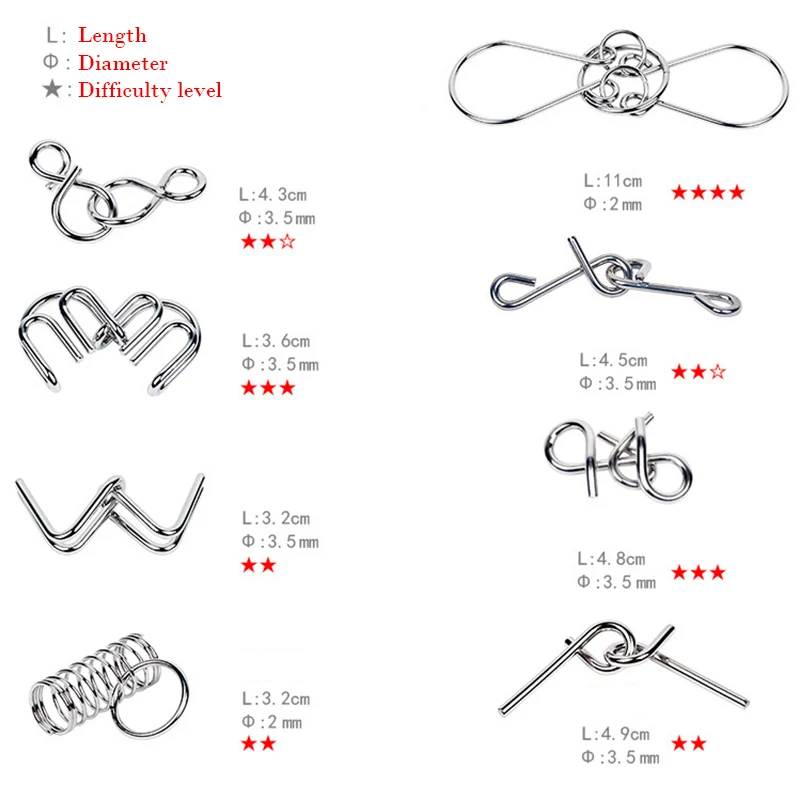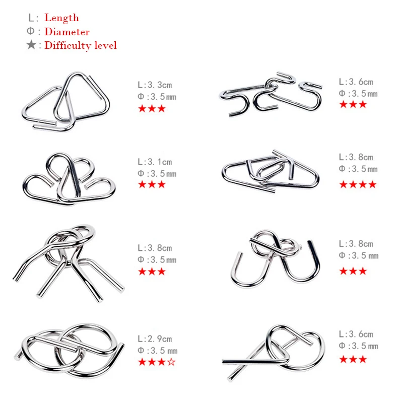 Этот металлический набор головоломок состоит из 8 классических металлических пазлов, все эти Пазлы очень Классические и популярные, очень идеально подходят для детей и взрослых.