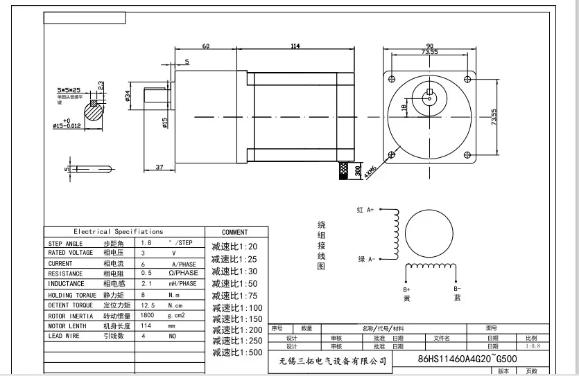 NEMA 34 редуктор шагового двигателя 114 мм длина 6A 8N.m