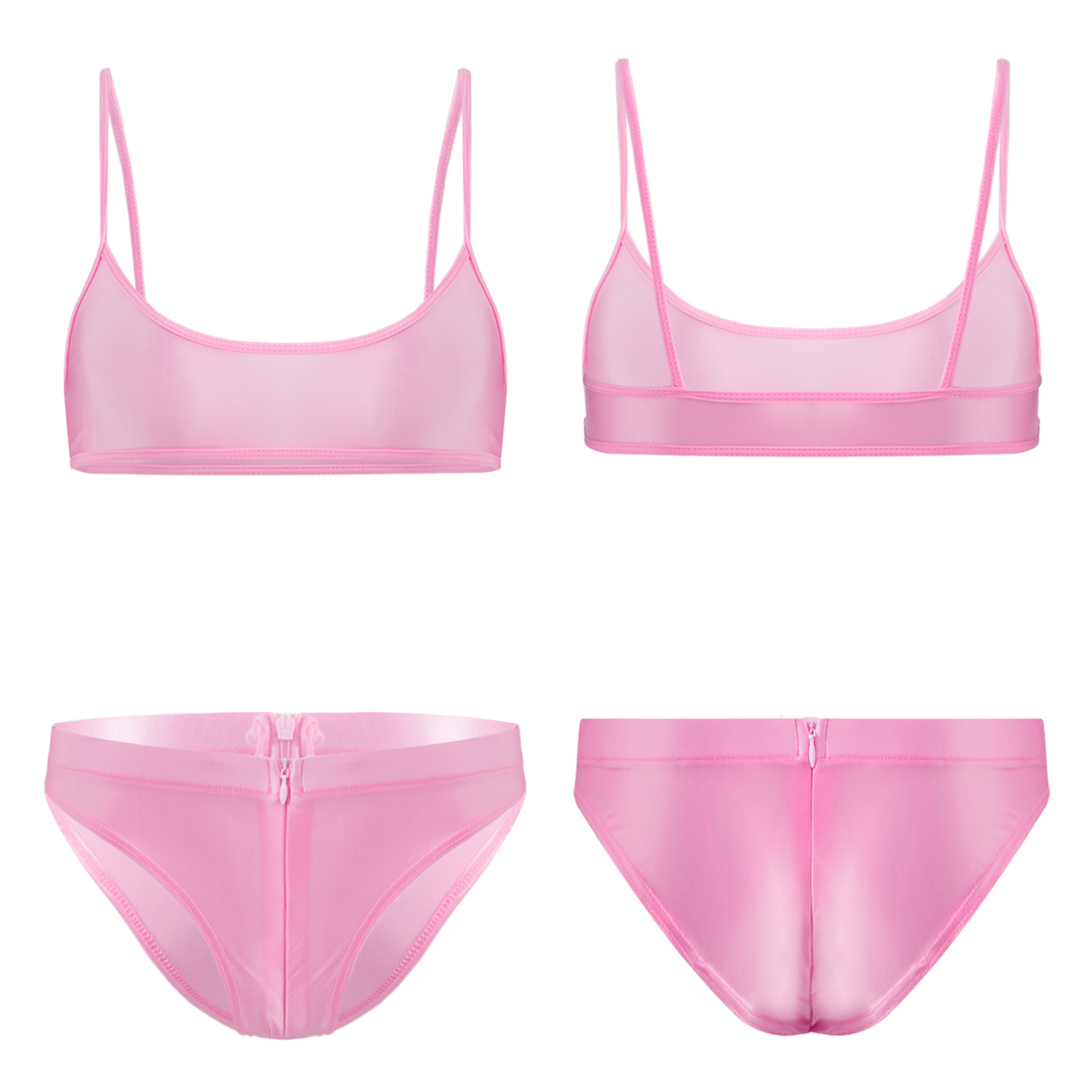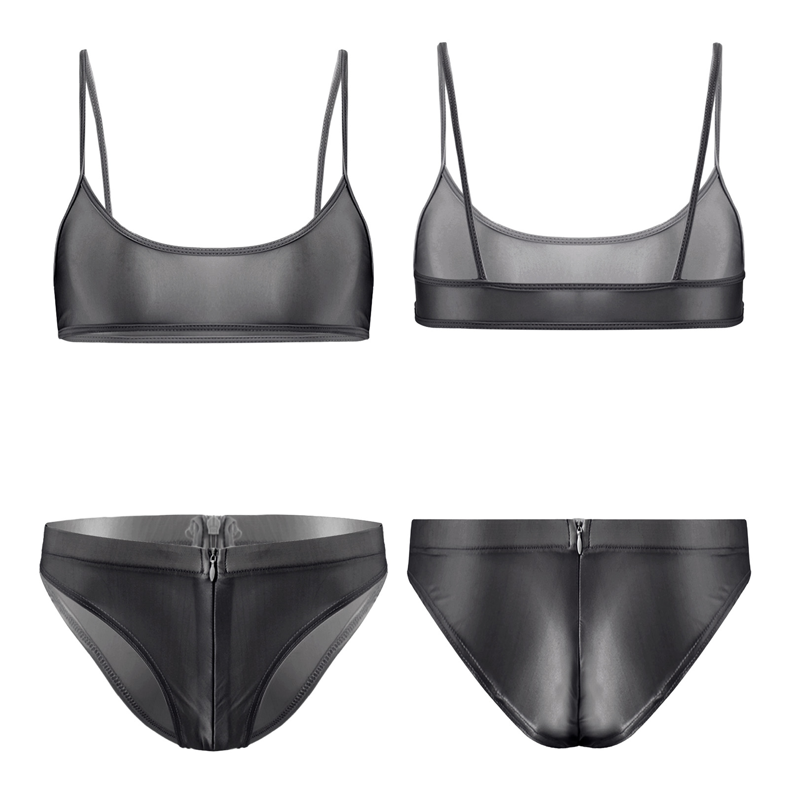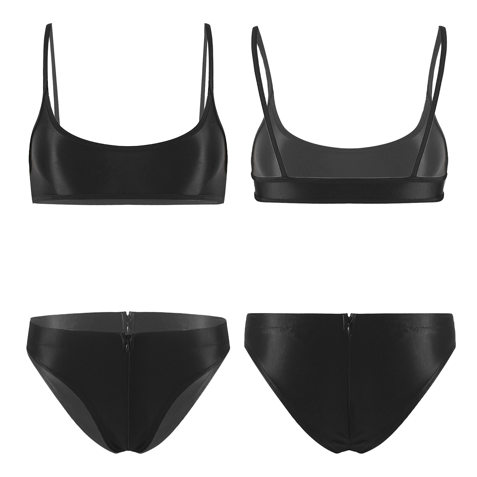 Женское нижнее белье бикини, Шелковистый Бюстгальтер, топы с застежкой-молнией, Комплект трусов.