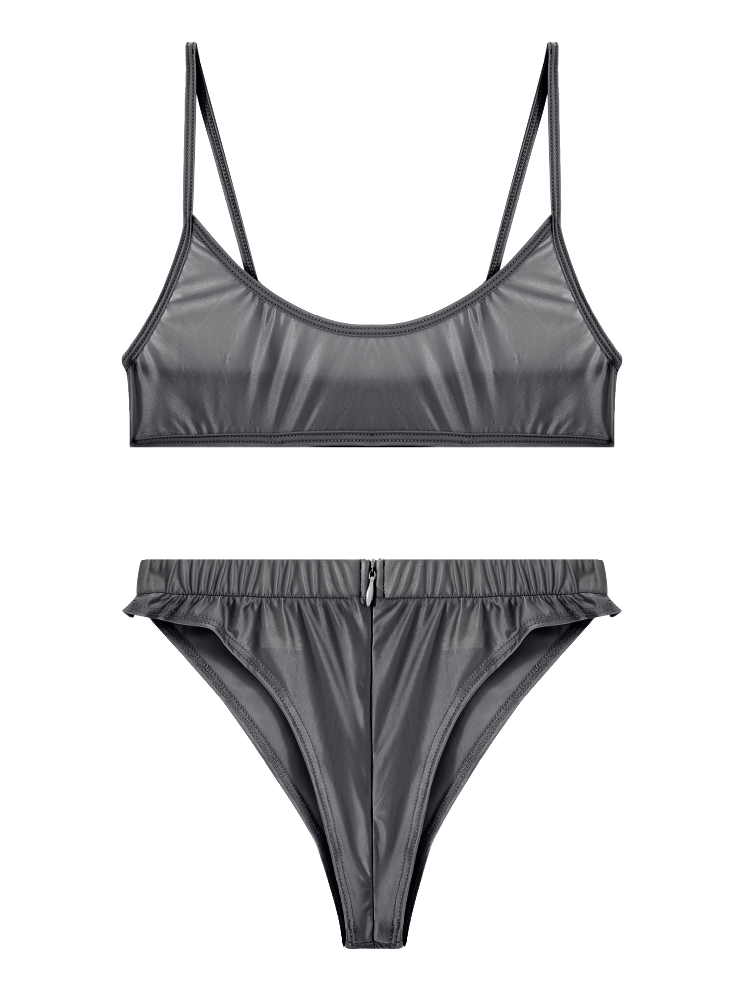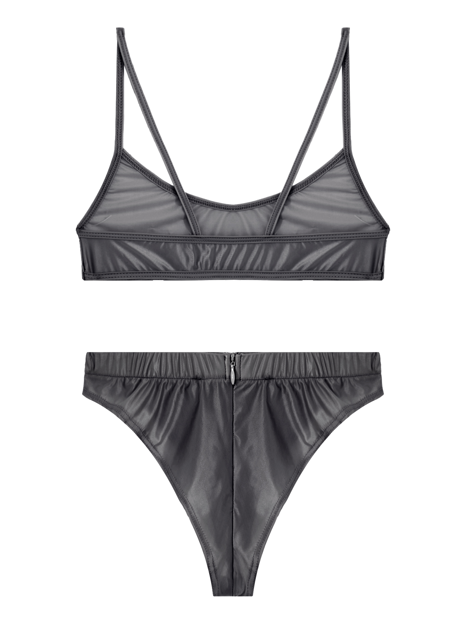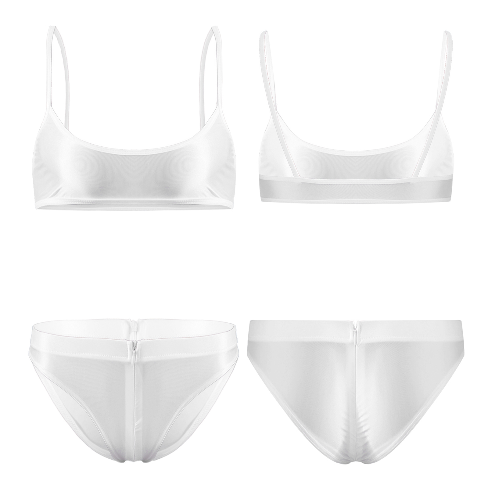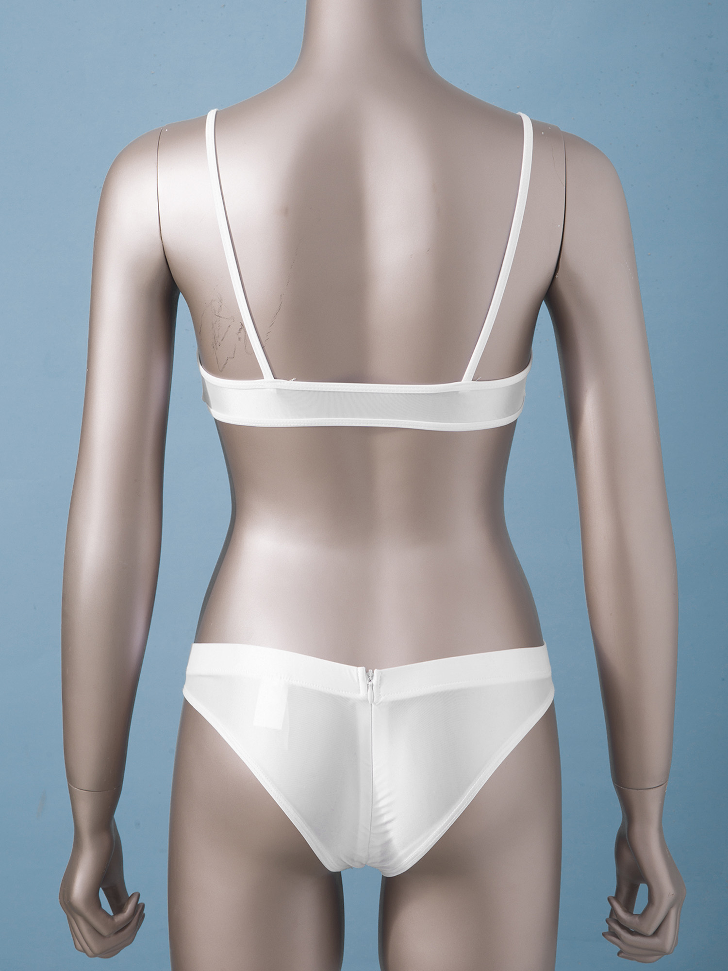 Женское нижнее белье бикини, Шелковистый Бюстгальтер, топы с застежкой-молнией, Комплект трусов.