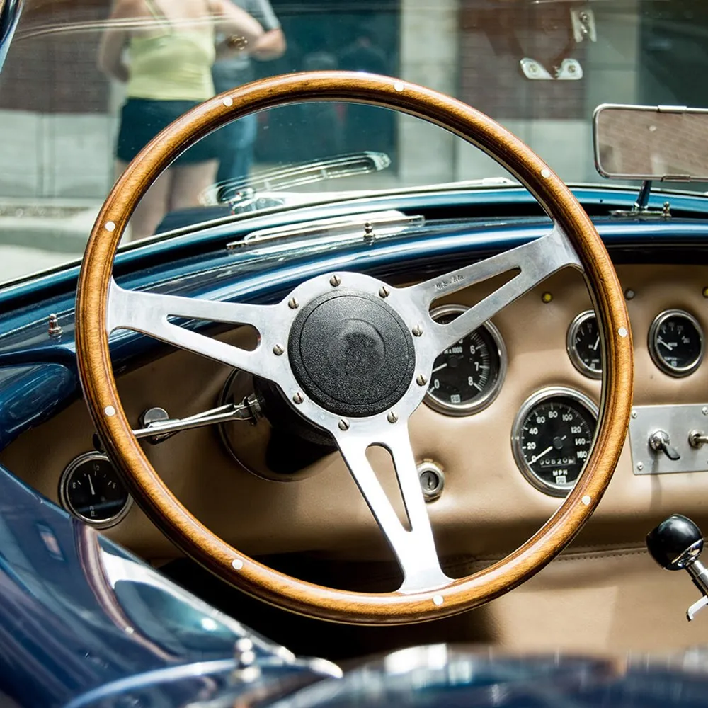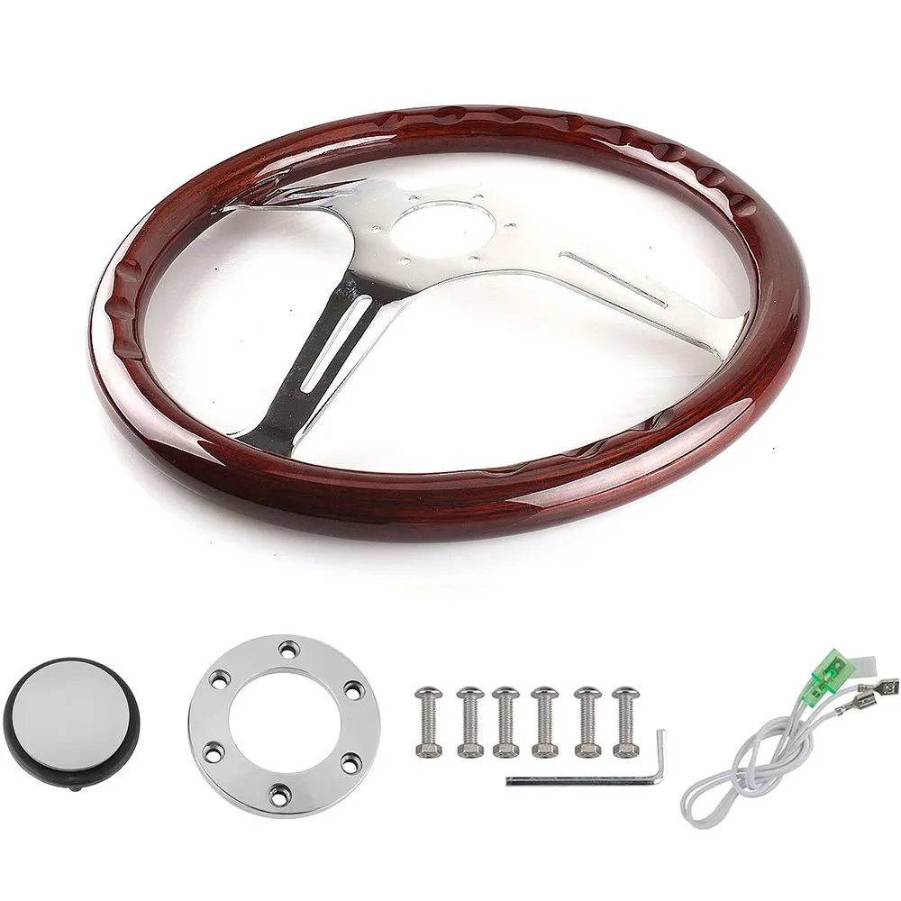 Это рулевое колесо имеет ручную потертую рукоятку из красного дерева и прорезные хромированные спицы. Он имеет настоящую темную окрашенную деревянную рукоятку. Древесина была покрыта уретаном, чтобы дать колесу более длительный срок службы термостойкости в течение жарких дней.