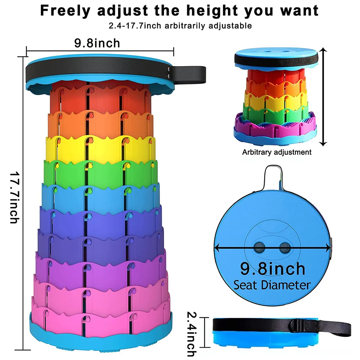 -Регулируемая высота: Складной стул регулируется, и может быть установлен на ваш желаемую высоту в диапазоне от 2,4 до 18 дюймов. Эта регулировка делает его пригодным для большинства взрослых и детей в использовании в любом месте!