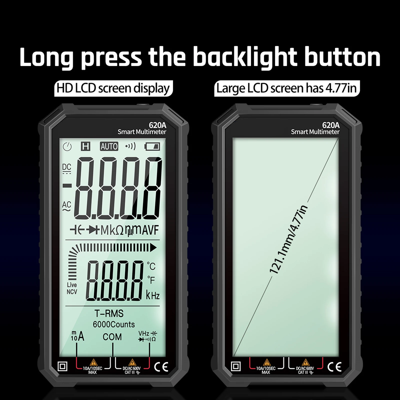 Легко читать: 4,77 дюймовый ЖК-дисплей с задней светильник позволяет просматривать показания четко даже в тусклом светильник.