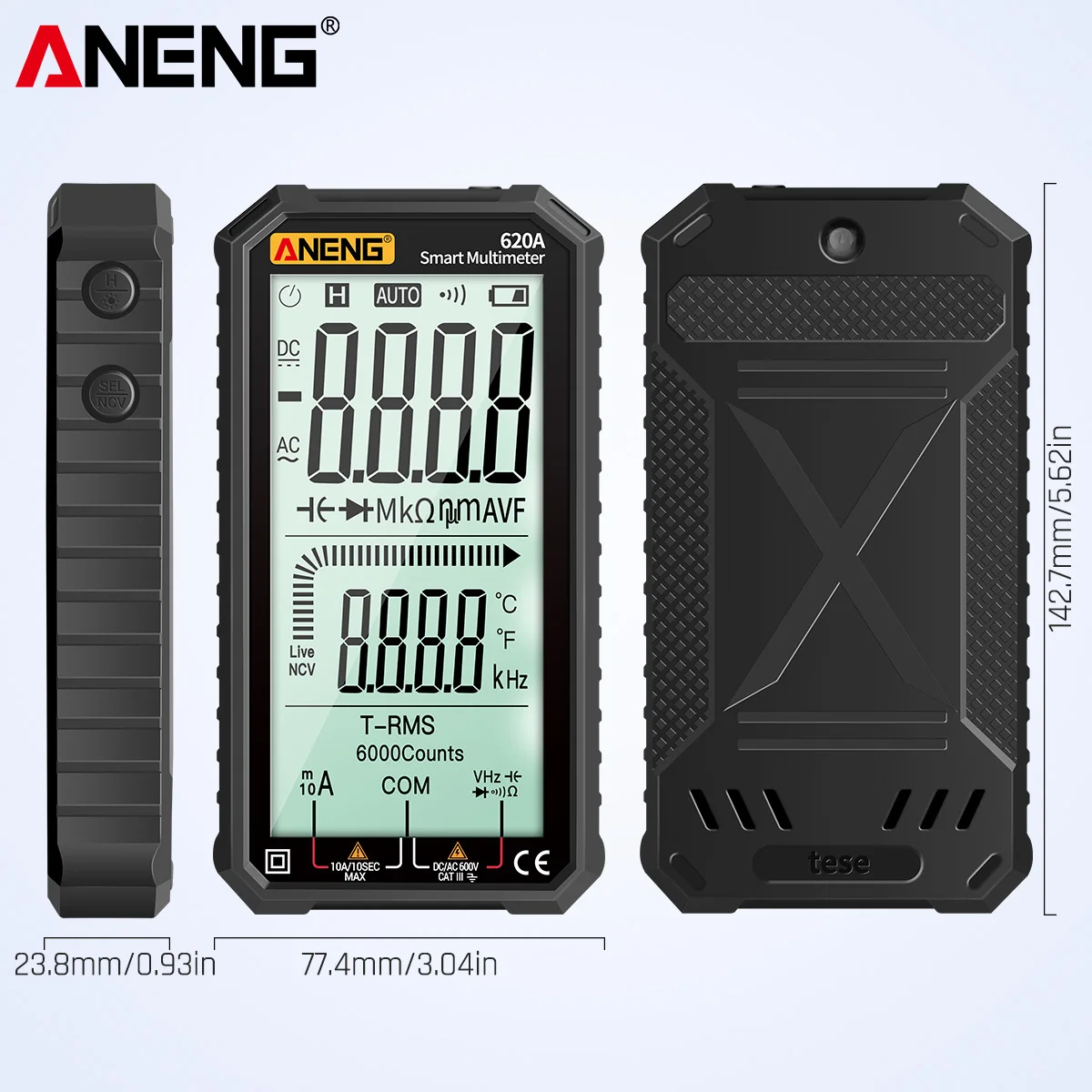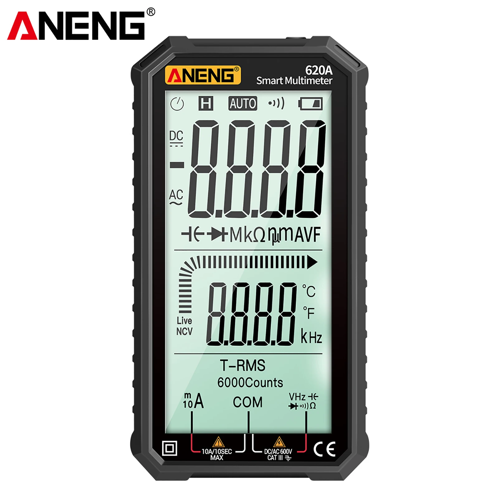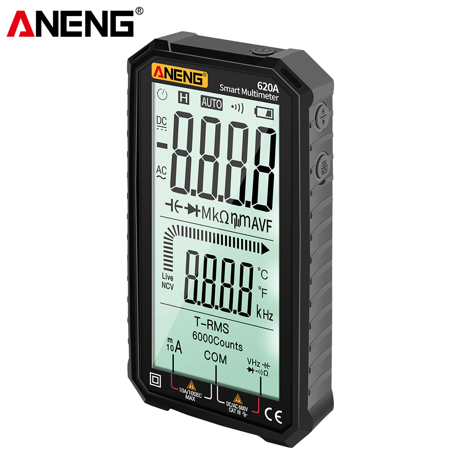 Карманный мультиметр ANENG отличается размером ладони, большим ЖК-дисплеем 4,77 дюйма, автоматическим диапазоном, истинным RMS, защитой от перегрузки, противоударным силиконовым покрытием и звуковым сигналом NCV. Он является ультрапортативным для обслуживания автомобилей, электроники, бытовой техники, ОВКВ и многого другого.