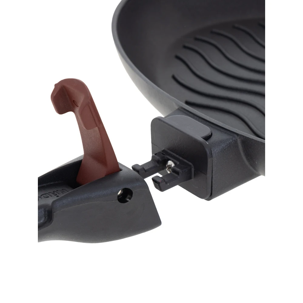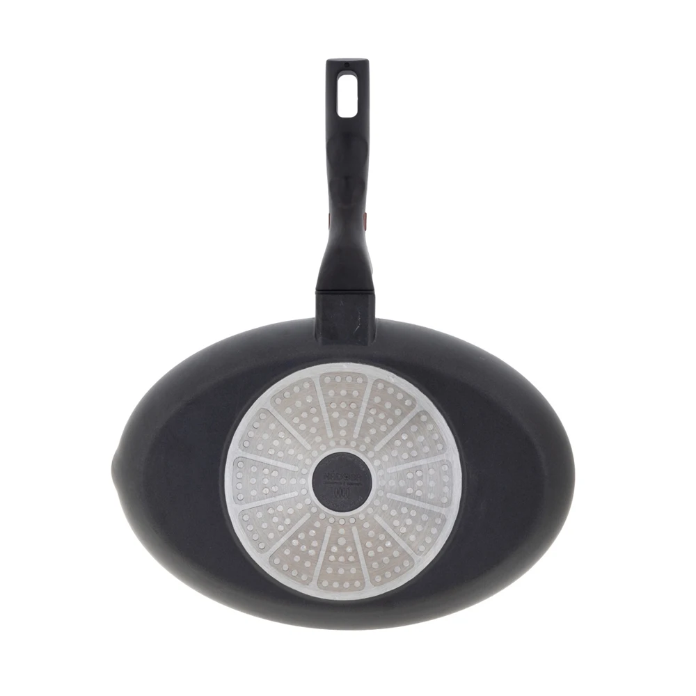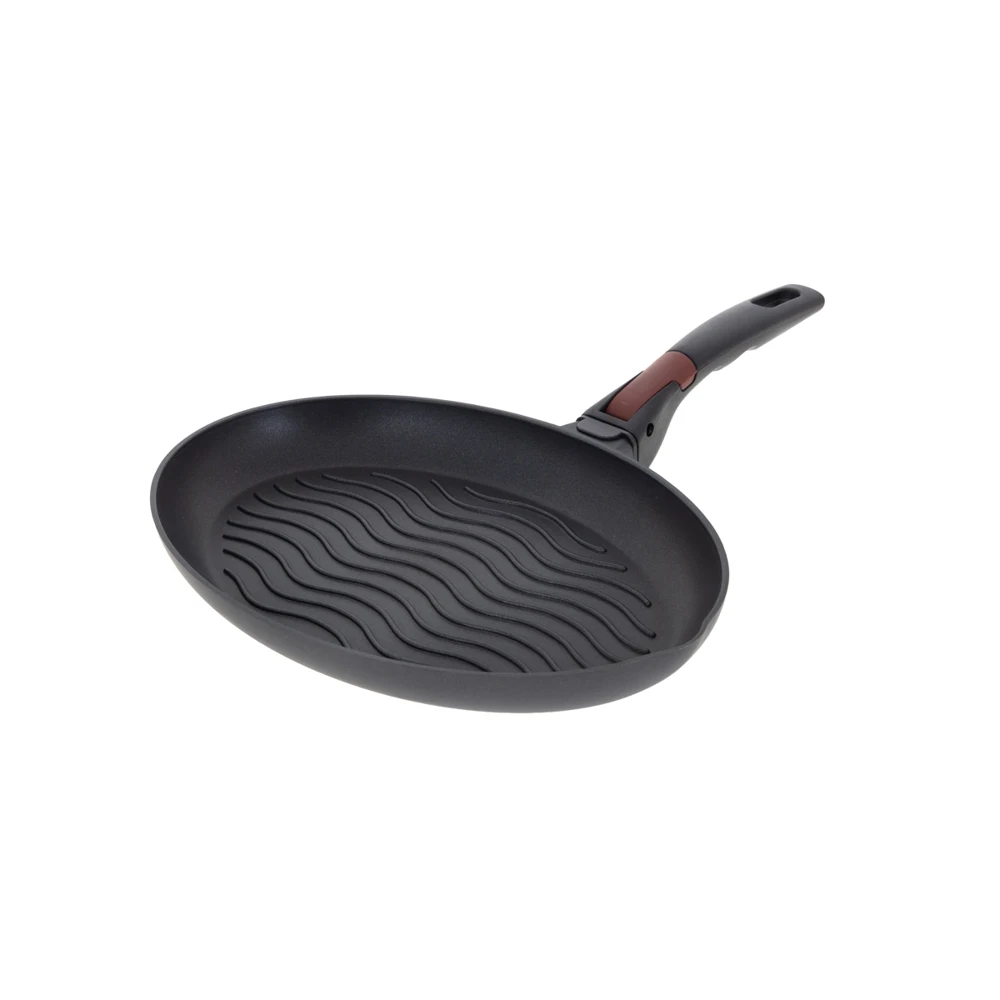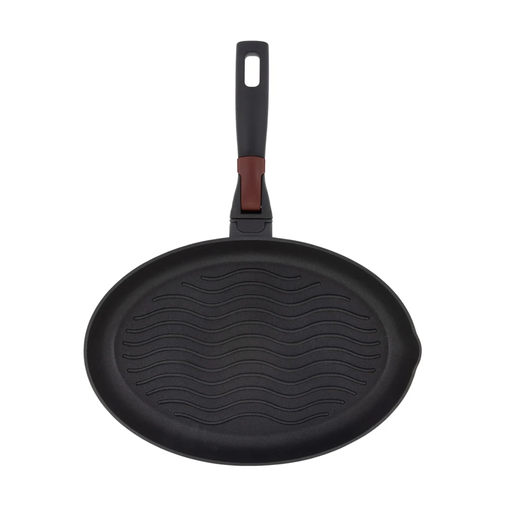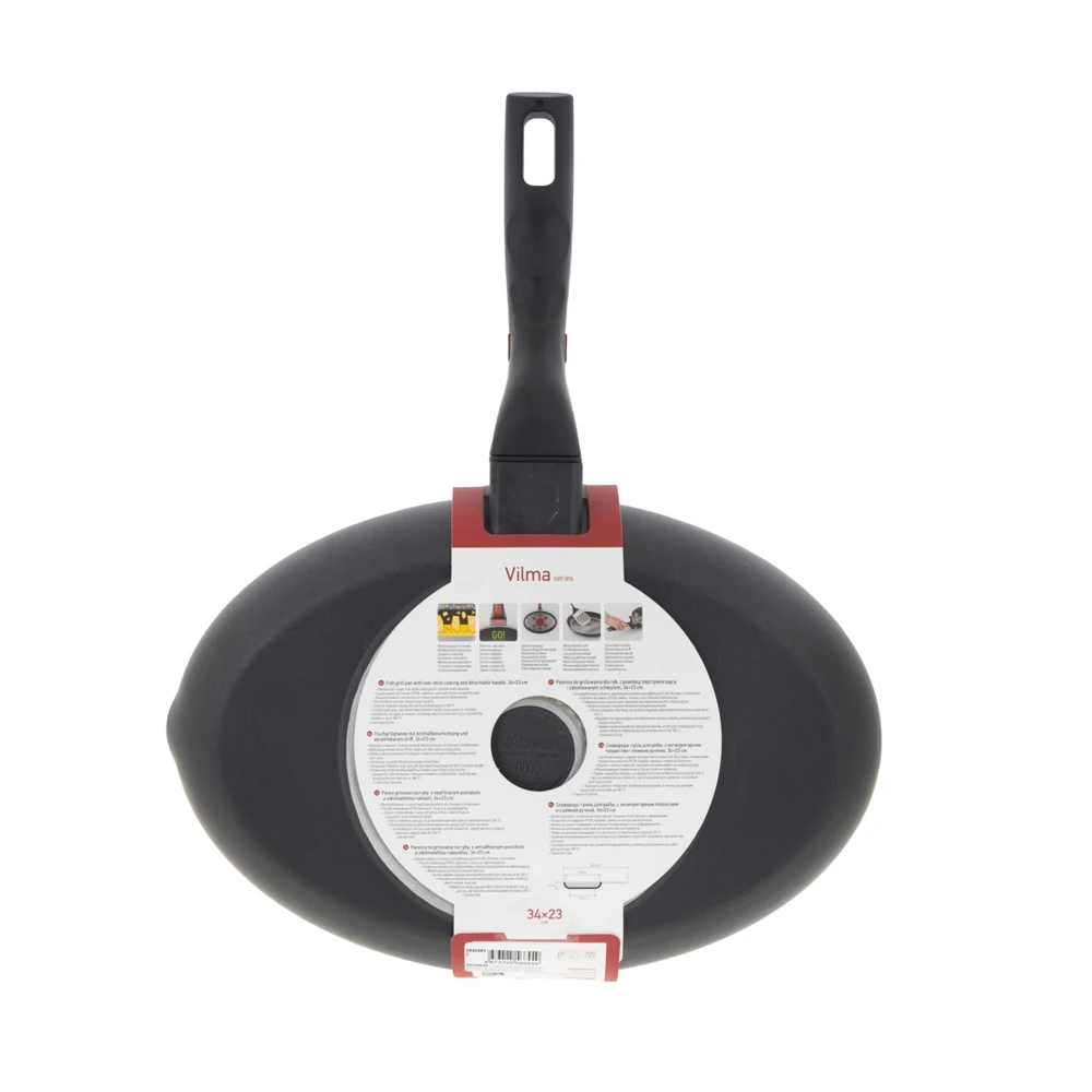 Сковорода - гриль NADOBA серии VILMA идеальна для приготовления рыбы. В ней сохраняется невероятная сочность и незабываемый аромат продукта. Блюда, приготовленные на сковороде - гриль с антипригарным покрытием будут не только очень вкусные, но и полезные. Рельефный рисунок, на дне сковородки создает невероятное ощущение того, что вы находитесь на природе и жарите мясо на углях. Сковорода - гриль изготовлена из высококачественных и экологически чистых материалов, не содержит вредных веществ в своем составе. Корпус домашней сковороды-гриль произведен из литого алюминия. Эргономичная съемная ручка не нагревается и не скользит в руках при эксплуатации. Скороворода - гриль со съемной ручкой может храниться в самых маленьких ящиках и шкафах. Внутреннее 4-слойное антипригарное покрытие ILAG Ultimate с минералами предотвращает прилипание и пригорание пищи. Возможно применение металлических инструментов во время приготовления. Сковорода - гриль наделена термо-индикатором. Размер сковороды 34*23 см. Подходит для всех типов плит в том числе индукционных. Гарантийный срок 5 лет.