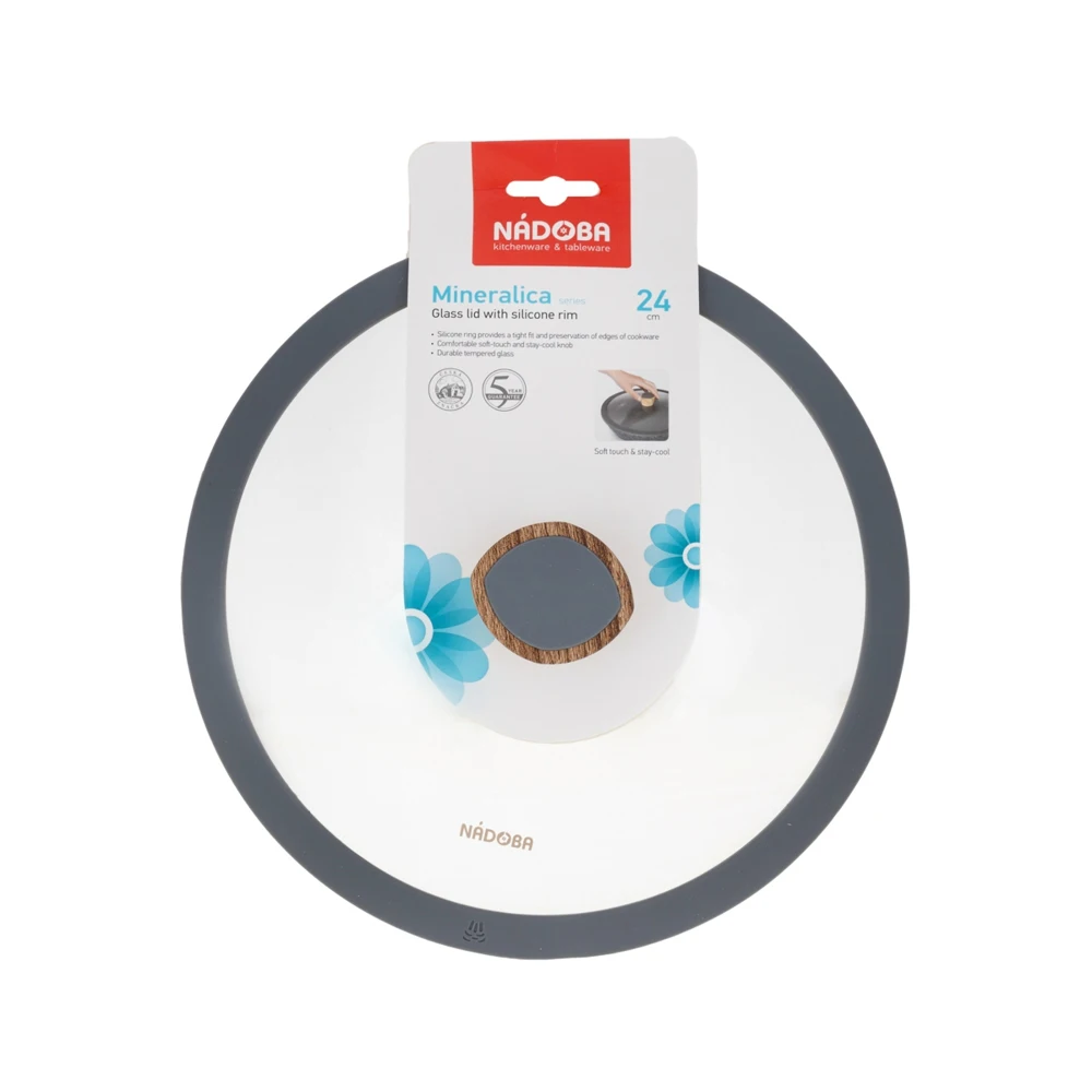 Использовать шаблонизатор наименований true Название Стеклянная крышка с силиконовым ободом, 24 см, NADOBA, серия MINERALICA Страна-изготовитель Чехия Аннотация Силиконовый обод для плотного прилегания крышки. Удобная ненагревающаяся ручка с силиконовым покрытием, предотвращающим выскальзывание. Прочное закаленное стекло. - Крышки серии Mineralica изготовлены из прочного закаленного стекла и оснащены отверстиями для выпуска пара. - Силиконовый обод обеспечивает плотное прилегание крышки к посуде и предохраняет бортики посуды от повреждений. - Удобная ненагревающаяся ручка с покрытием "Софт-тач", предотвращающим выскальзывание крышки из рук. - Гарантия на крышки серии Mineralica 5 лет. ИКОНКИ:- Не греется, не скользит ПЕРЕД ИСПОЛЬЗОВАНИЕМ: - Удалите с посуды все этикетки, наклейки и ярлыки, тщательно вымойте ее в горячей воде с использованием моющего средства, хорошо ополосните и вытрите насухо.УХОД: - Допускается мытье посуды в посудомоечной машине (при наличие маркировки на упаковке), но желательно не использовать концентрированные моющие средства.- Для удаления сильных загрязнений и нагара предварительно замочите посуду в воде или в слабом растворе моющего средства.Покупала этот прекрасный свитер себе на зиму. Мне очень понравился. Удобный и свободный, как я и люблю, да и в... Читать отзыв полностью...