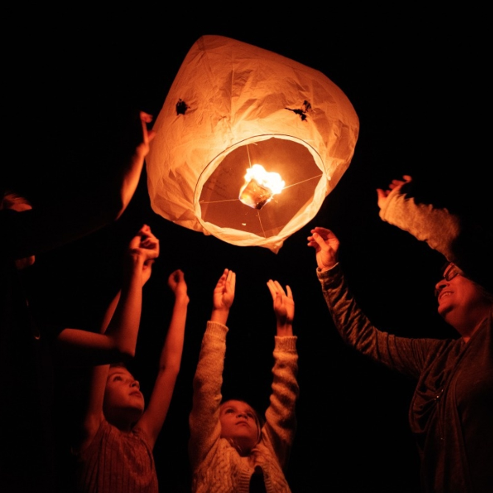 Напиши на Летающий светильник с пожеланиями благословение или благословение своей семье, друзьям или влюбленным, а затем освети ночное небо в ночь надежды.