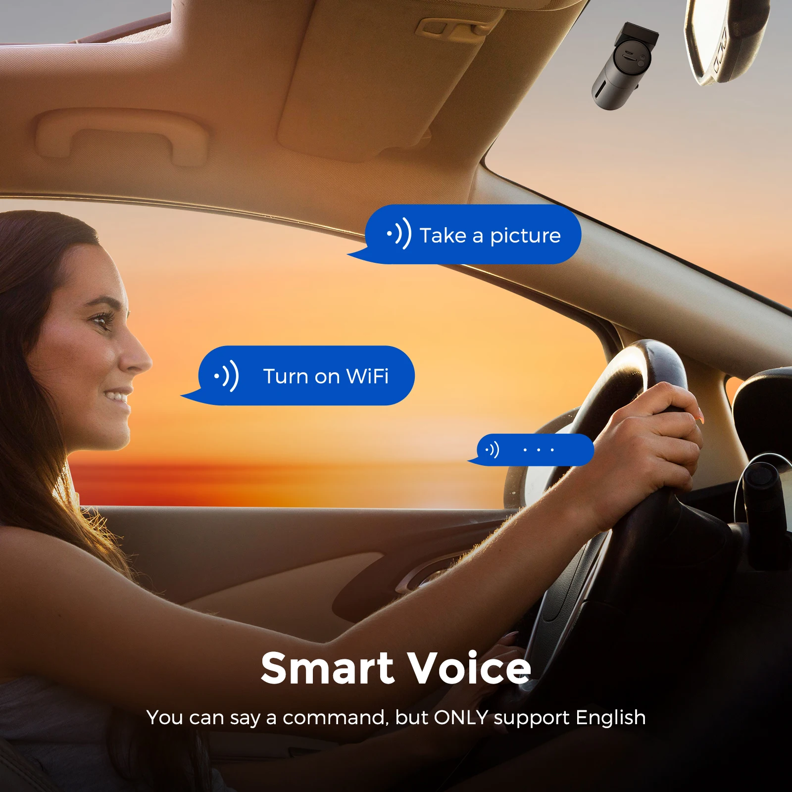 M300s smart dash cam comes with 6 voice commands, you can completely release your hands and travel without worry;Simply give voice commands to finish your photo/video taking tasks and more, all hands-free.