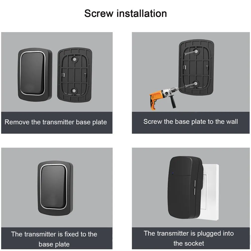 1. Беспроводной дверной звонок с автономным питанием: домашний дверной звонок с 32 песнями длиной 2,150 М. Беспроводной пульт дистанционного управления 3. Водонепроницаемый дверной звонок, четыре уровня громкости, автономный режим, аккумулятор не требуется.