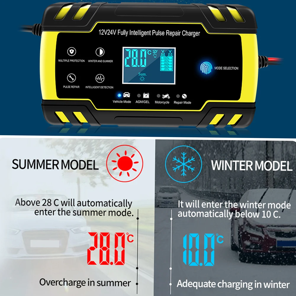 Зарядное устройство с несколькими безопасными защитой для обеспечения безопасного использования, оно имеет защиту от перенапряжения, защиту от перегрева, защиту от перезаряда, защиту от короткого замыкания, защиту от обратного соединения, защиту от перегрузки по току и защиту от низкого тока.Зарядка постоянного тока, зарядка постоянного напряжения и поплавковая зарядка, которые подходят для большинства типов батарей, включая кальций, гель и AGM, влажные батареи.С летним и зимним режимом и может обнаруживать температуру, и он автоматически переключается на соответствующее напряжение.Низкий уровень шума и тепловыделение: бесшумный охлаждающий вентилятор работает с алюминиевым радиатором, что значительно продлевает срок службы зарядного устройства.Оснащен бесшумными вентиляторами охлаждения и алюминиевым радиатором, может продлить срок службы этого зарядного устройства.ЖК-цифровой дисплей напряжение, ток, температура, емкость батареи в режиме реального времени, удобно читать.Трансформатор из чистой меди, стабильный выход, высокая скорость преобразования, энергосбережение, большая емкость и т. д.Типы батарей: большинство типов свинцово-кислотных аккумуляторов.Тип 3