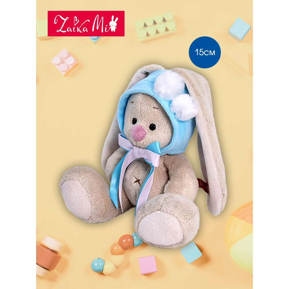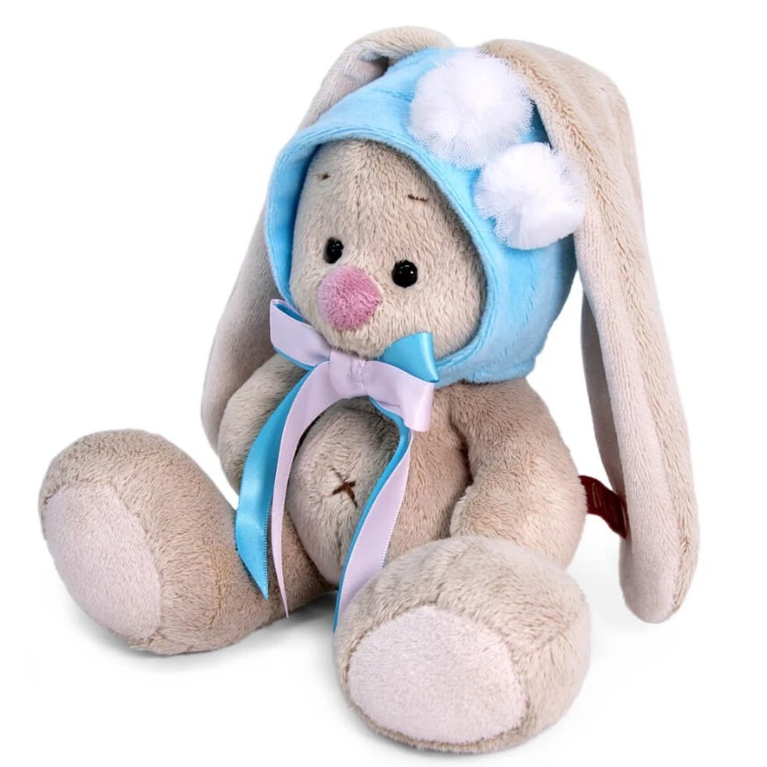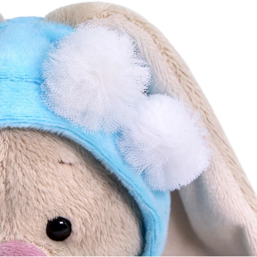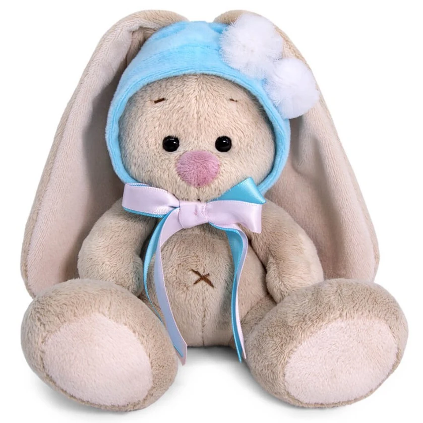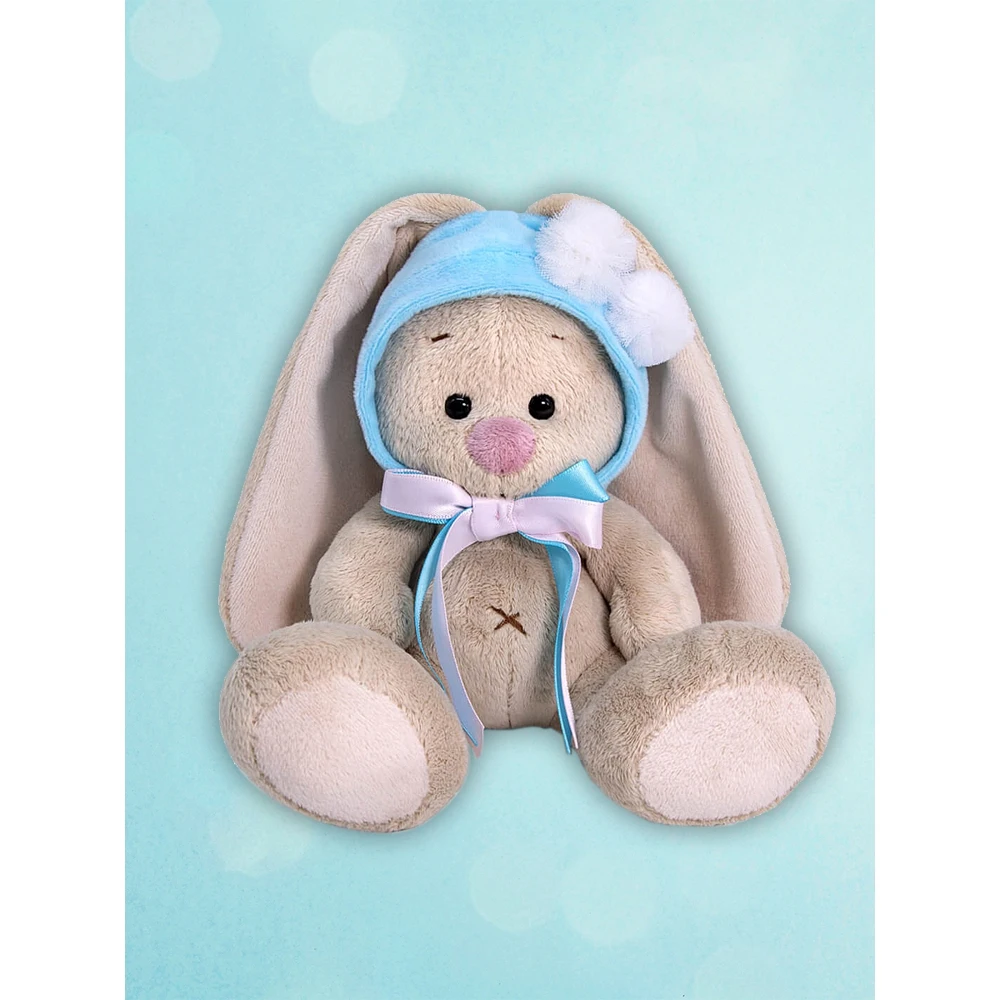 Коллекция заек Ми-одна из самых необычных и завораживающих. Эти зайки увлекаются не морковью и капустой, а винтажными нарядами, необычными аксессуарами и модными тенденциями. Зайки Ми часто посещают праздники, развлекательные мероприятия и вечеринки, на этот случай они оденут самые лучшие наряды и украшения. Плюшевая игрушка-зайка нежно-кремового цвета с невероятно мягкой, короткой шерсткой, длинными ушками, глазками в виде бусинок, милым розовым носиком-сплошной антистресс и пушистая нежность. Какой трогательный малыш в милой шапочке нежно-голубого цвета из мягкого софта. Шапочка застегивается на пуговку, украшена двумя пушистыми меховыми помпонами и бантиком из двух атласных лент, нежно-розового и голубого цвета. Игрушка упакована в подарочную картонную коробку открытого типа. Отличный сюрприз к любому празднику для малышей и взрослых. Игрушка сертифицирована, соответствует требованиям качества и безопасности.