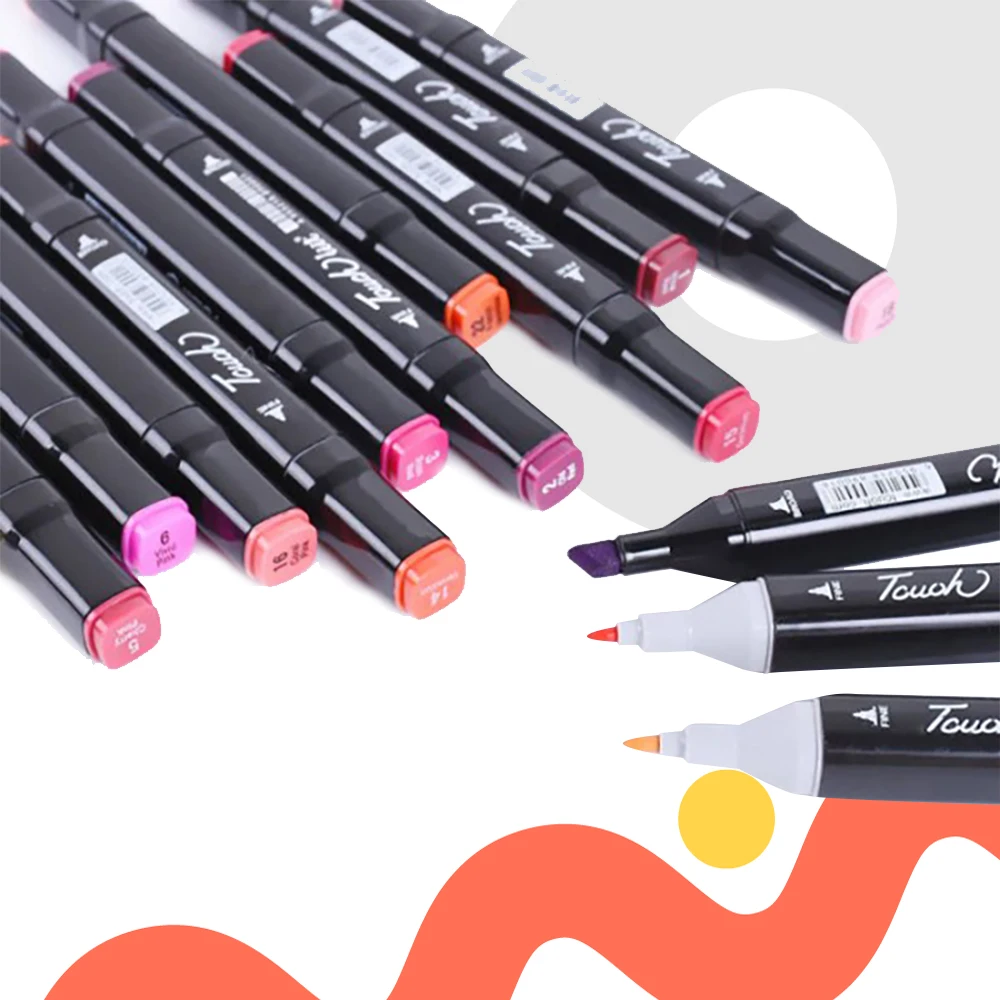 Маркеры подходят для самых требовательных художников, иллюстраторов, дизайнеров и любителей скетчинга. Приятный на ощупь эргономический корпус позволяет держать контроль при рисовании точных и сложных скетчей. Два пера удобны для комбинированной работы. Мягкая кисть для проработки деталей и широкое плоское для закрашивания больших фрагментов. Чернила на спиртовой основе нетоксичны и не портят поверхность бумаги в отличие от маркеров на водной основе. Скетчи данными маркерами быстро высыхают на бумаге и становятся водостойкими, бескислотными. Маркеры подходят для использования на бумаге, картоне, фотографиях, ксерокопиях, пластике, дереве, ткани, холсте.