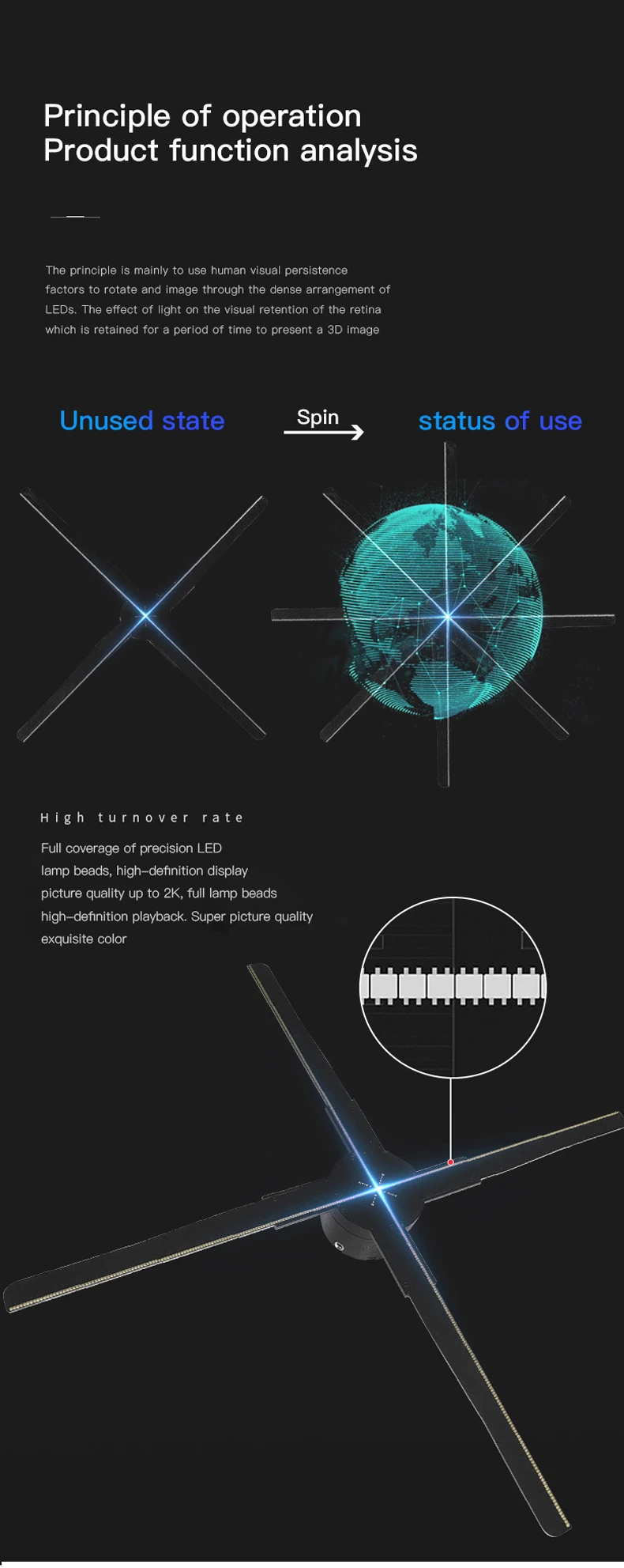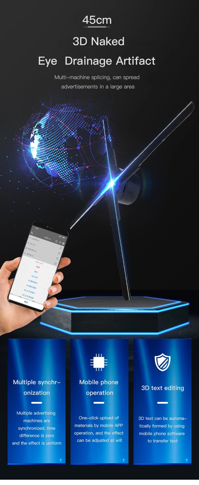 Голографическая рекламная машина Naked Eye 3D 45 см, проектор, визуализация, стерео, динамический, вращающийся на воздухе, подвесной светодиодный светильник, настенный вентилятор
