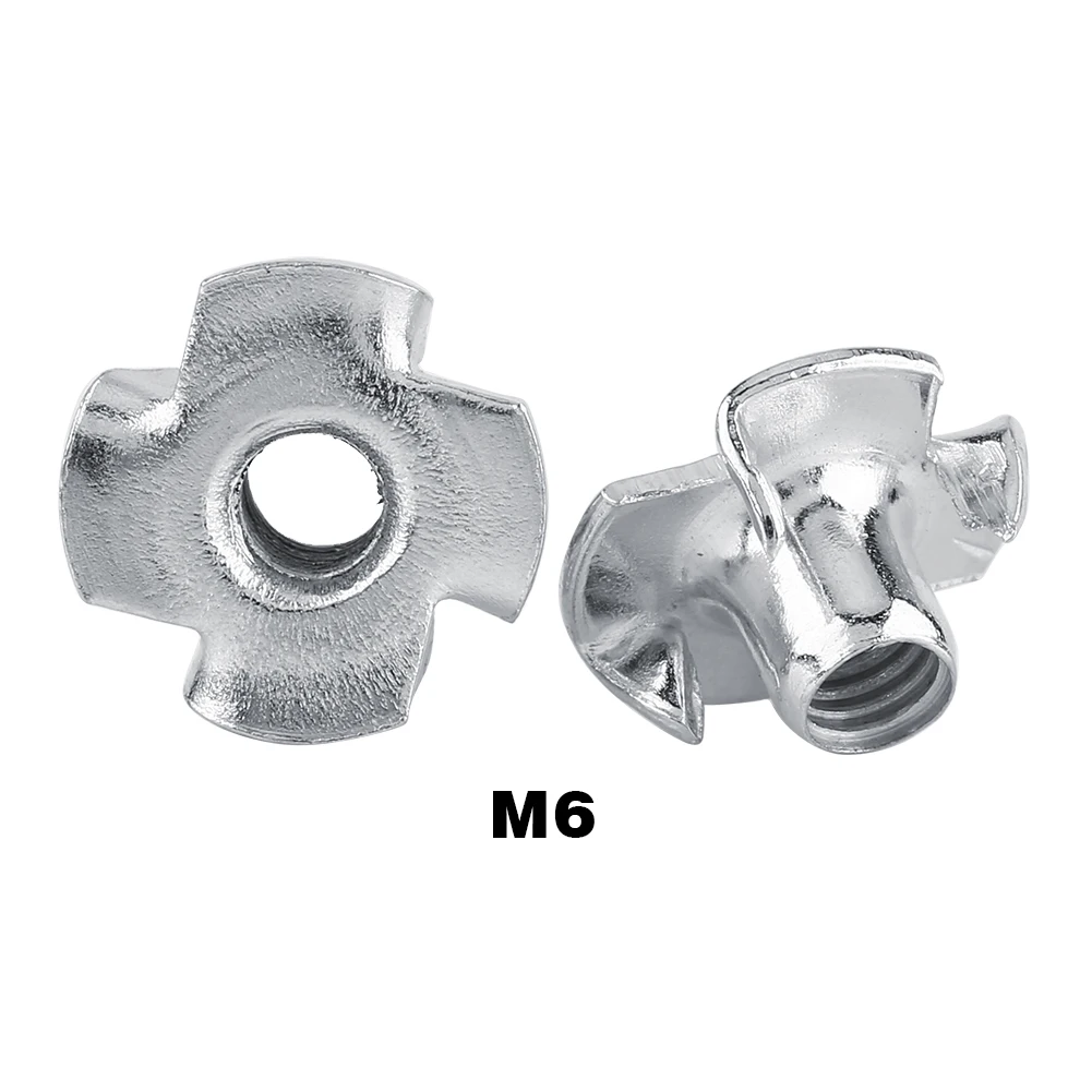 Т-образная гайка является типом гайки, используемой для закрепления заготовки из дерева, частиц или композитных материалов, оставляя полную поверхность. Он имеет длинный, тонкий корпус и фланец на одном конце, напоминающий T в профиле. Фланцы Т-орехов имеют зубцы, которые выкапывают в деревянную рабочую часть, так как болт затягивается с противоположной стороны куска, обеспечивая лучшее удержание.
