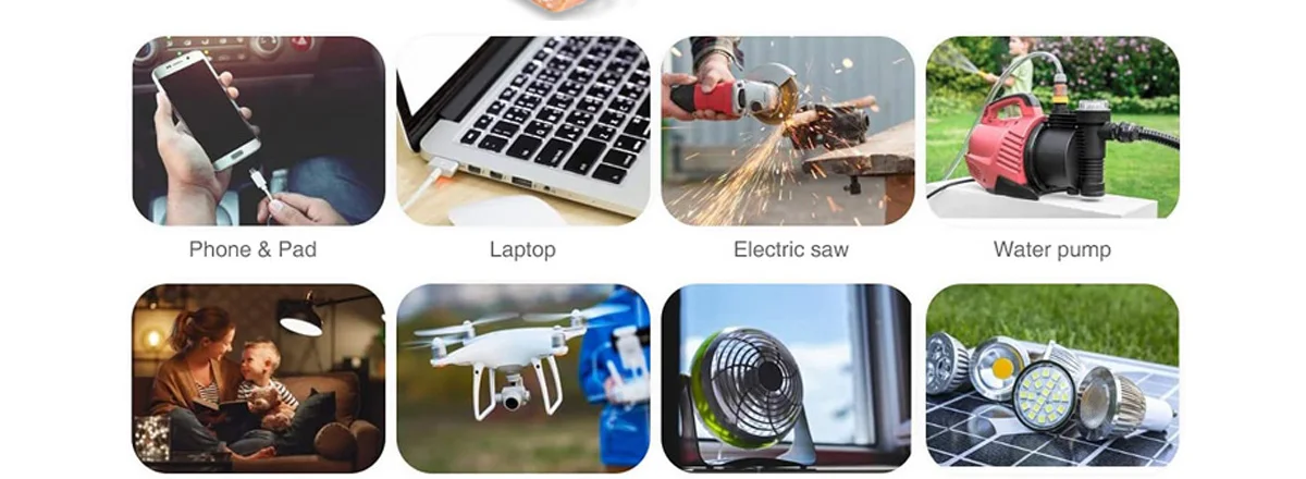 6. Пожалуйста, не перегружайте. Если ваши приложения индуктивные нагрузки, пожалуйста, выберите инверторы, непрерывная мощность которых в 3-7 раз выше, чем Ватты ваших приборов. Такие как холодильник, ледяной ящик, дрель, стиральная машина, водяной насос, микроволновая печь, духовка, пылесос, фен и т. д. с двигателем внутри. Пожалуйста, убедитесь, что постоянная мощность нашего инвертора отвечает вашим потребностям перед заказом, или проконсультируйтесь с нами для получения более подробной информации.