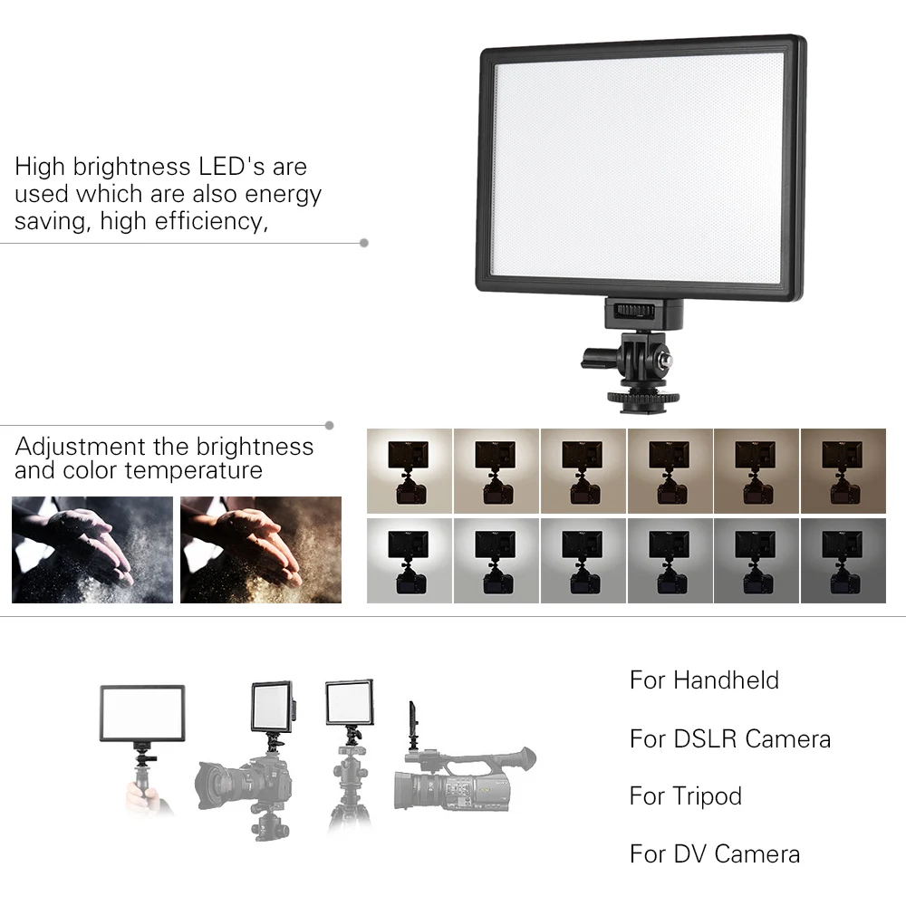 --- Вы можете регулировать яркость и цветовую температуру бесступенчато. Подходит для портретов, детей, свадеб и т. Д., обеспечивает идеальный и долговечный заполняющий свет при съемке и записи.