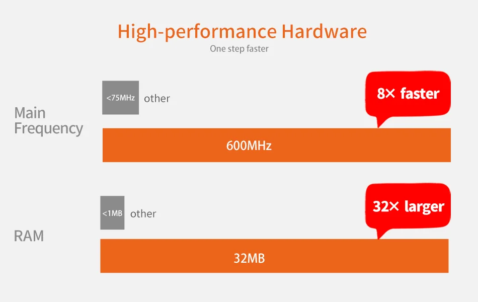 Эта панель безопасности использует высокоскоростной смарт-чип 600 МГц. Рабочая скорость этой панели безопасности в 12 раз выше, чем у других аналогичных хостов сигнализации (50 МГц). Таким образом, скорость бега быстрее и плавнее.