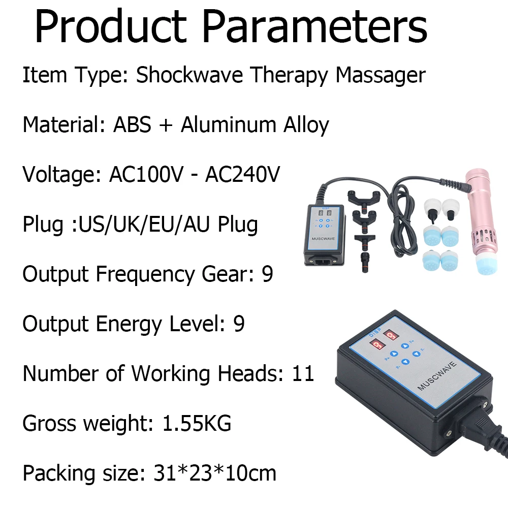 3. Оснащен 7 массажными головками: экстракорпоральная ударно-волновая терапия оснащена 7 различными рабочими зондами, которые могут быть использованы на различных частях тела для удовлетворения ваших потребностей. В то же время Ударная Волна четко расположена, оказывает минимальное воздействие на окружающие ткани и безопасна в использовании.