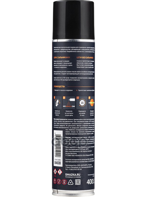 8408 Смазка Для Цепей Внедорожных Мотоциклов, 400мл Флакон-Аэрозоль