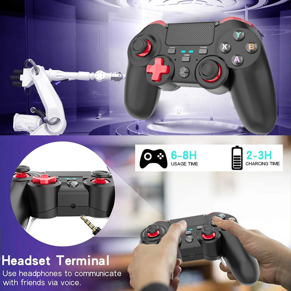 3. Встроенный Мощность Светодиодный светильник цвет дыхательный светильник, ручка имеет цветной светодиодный указать-плеер для канальной функцией и индикация состояния, и функция индикации такой же, как и оригинальное PS4 ручка. Различные ручки указаны разными цветными светодиодами.