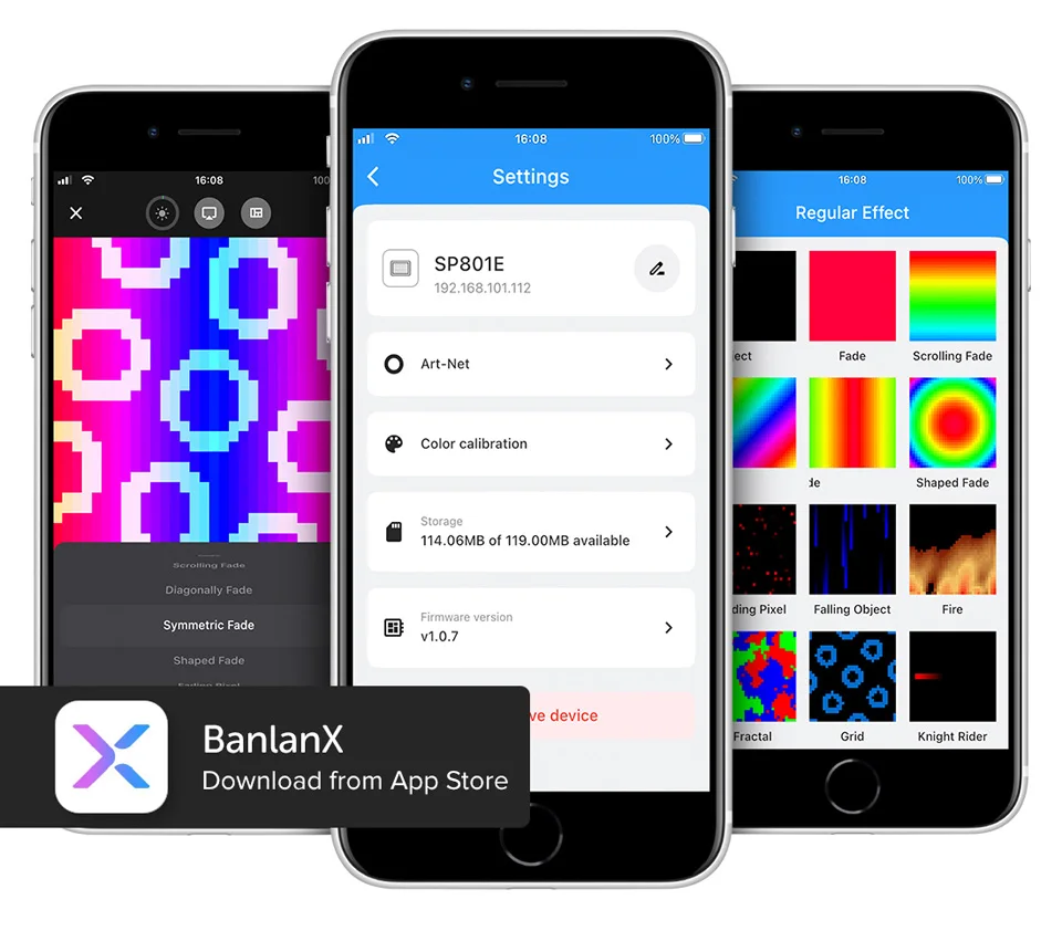 Откройте приложение BanlanX, нажмите кнопку «+» для настройки нового контроллера SP801E, затем контроллер будет показан в списке устройств;