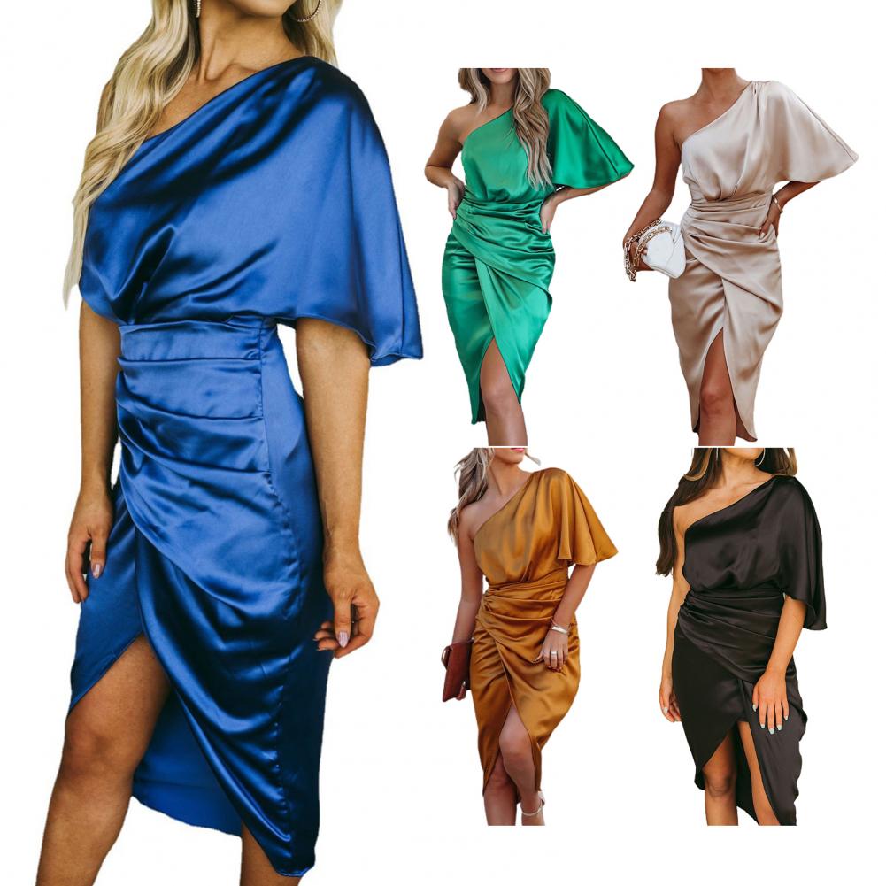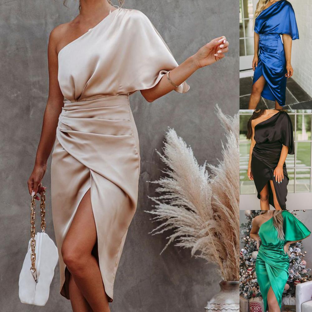 Вечерние платья с асимметричным подолом, высокой талией, вырезом лодочкой, высоким разрезом, на одно плечо, Сексуальные вечерние платья для ужина