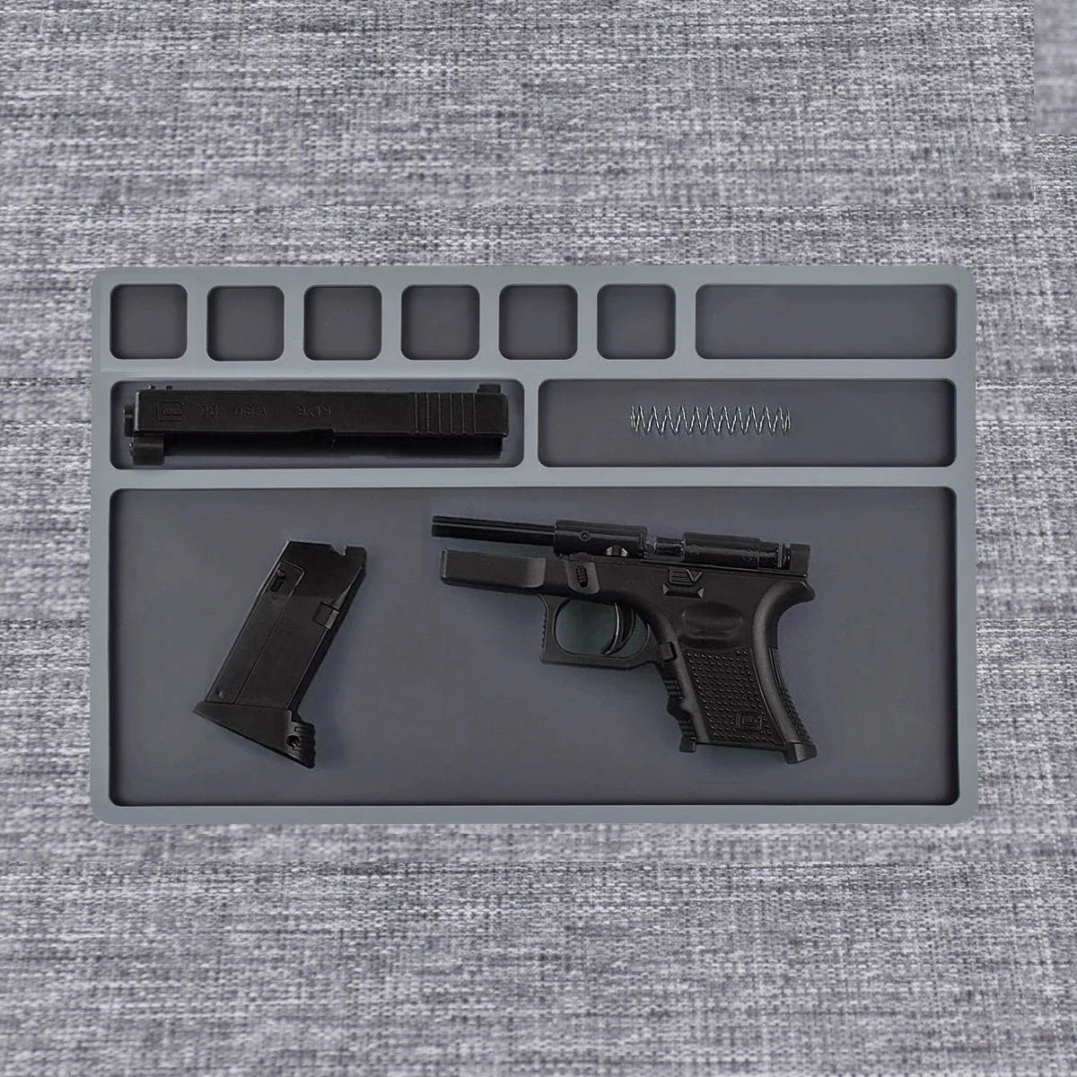 Работайте как профессионал на коврике для чистки ружья LAMBUL. Прочная, но мягкая поверхность идеально подходит для сборки и демонтажа оружия (или многих других хобби!) для чистки или обслуживания и ремонта пистолета. Формованные отсеки содержат разливы и сохраняют мелкие детали вне основной рабочей зоны, но все еще удобны и организованы. Необходимый коврик для обслуживания пистолета от LAMBUL является химически стойким и очищает с мылом и водой. Размеры 38 см x 43 см.