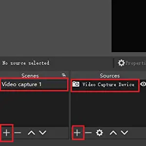 1,1Нажмите «+», чтобы создать сцену или использовать оригинальную сцену «Карта видеозахвата 1»;